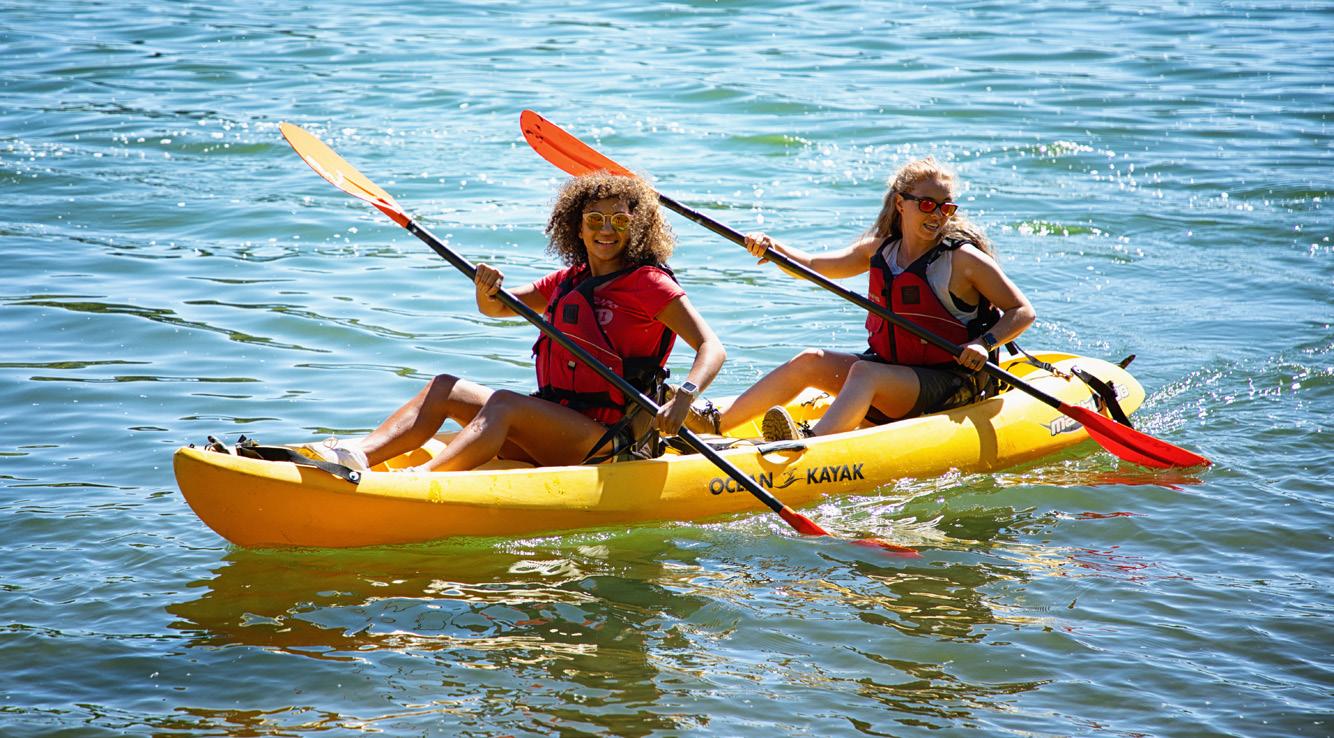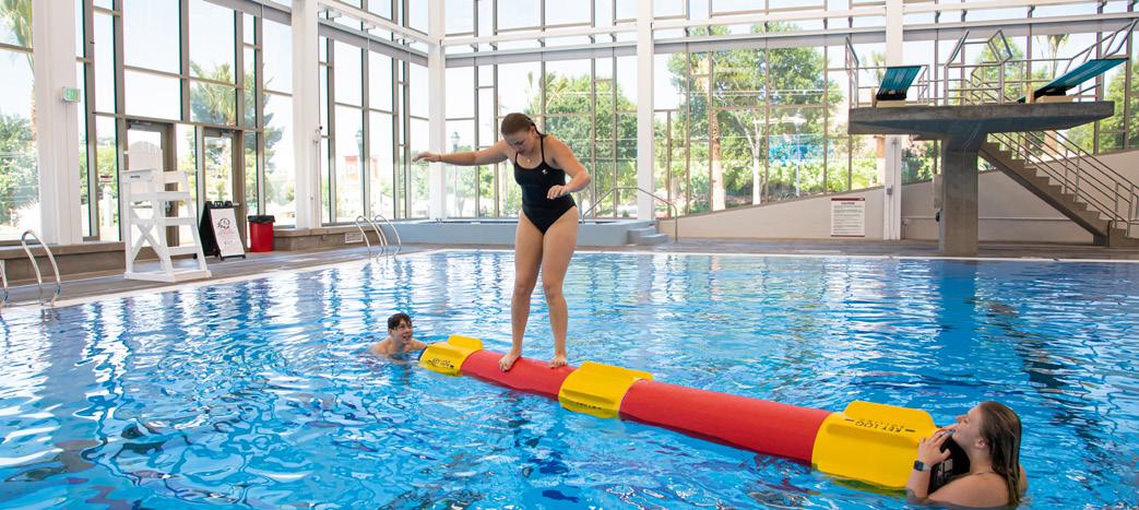 Jump off the high dive, scale the 65-foot rock wall, play basketball or rooftop pickleball, and stay in shape at this new building filled with fitness equipment, an Olympic-size pool, and state-ofthe-art academic labs.
