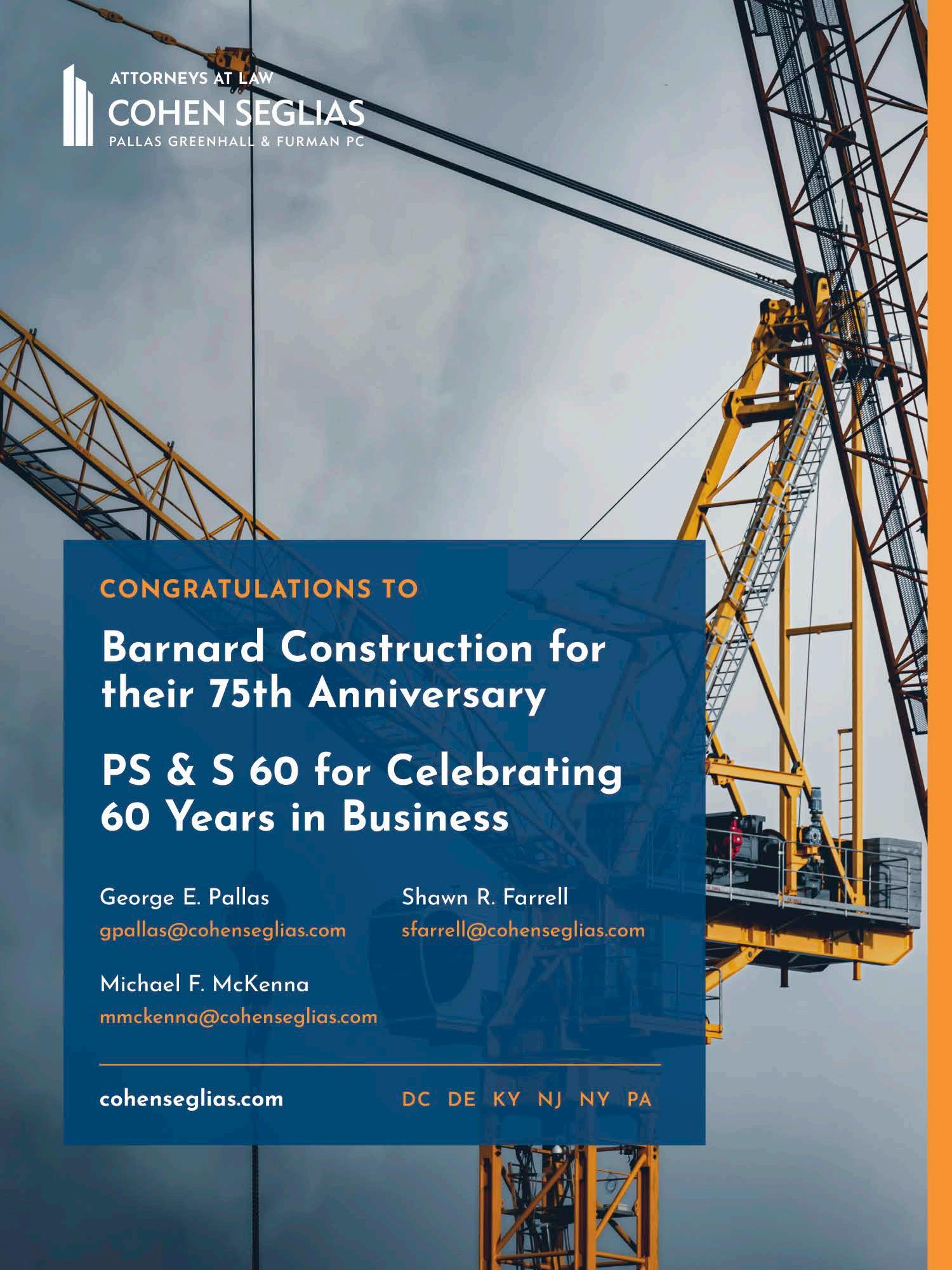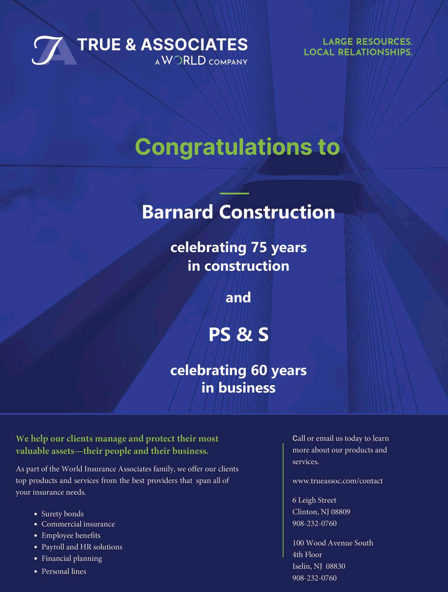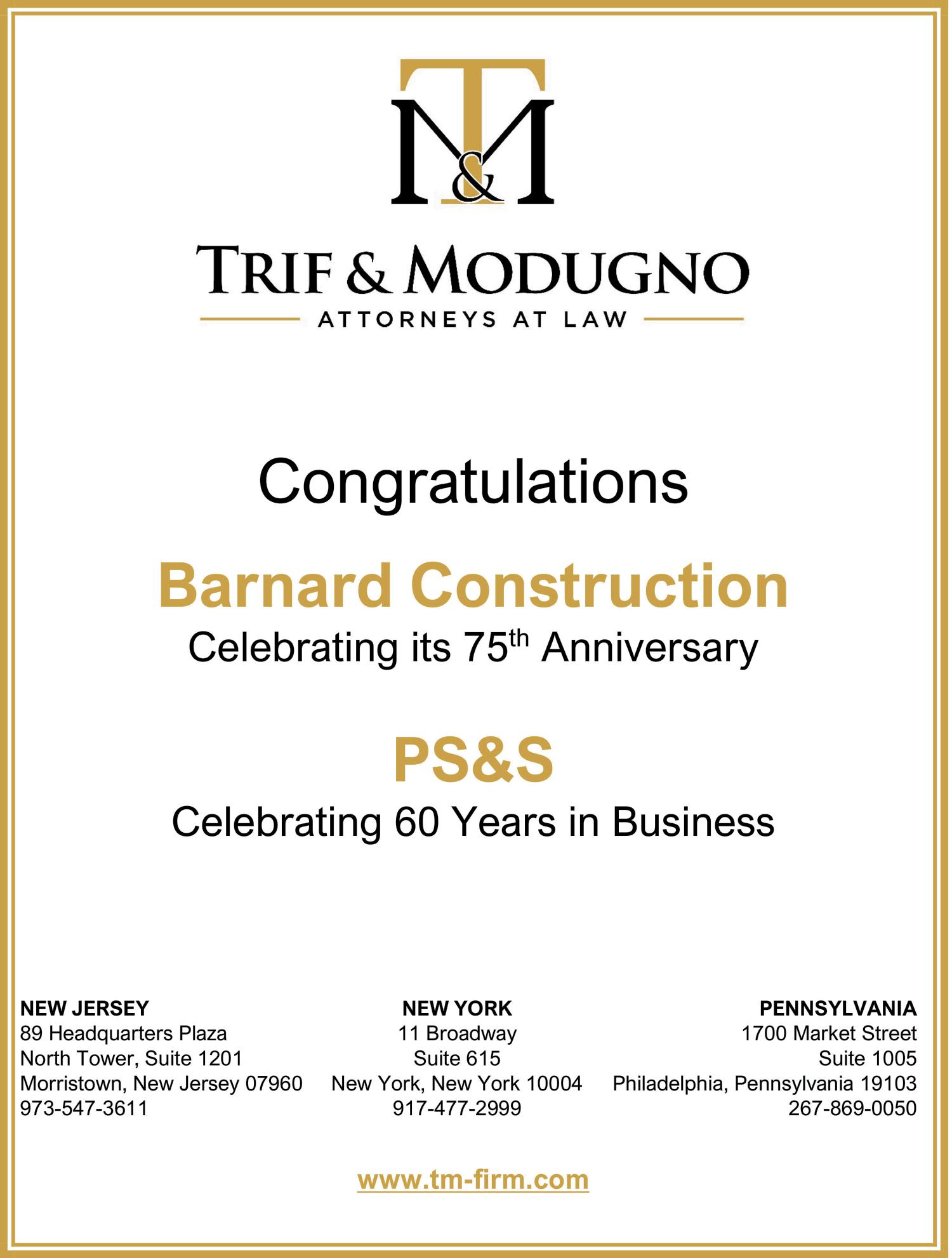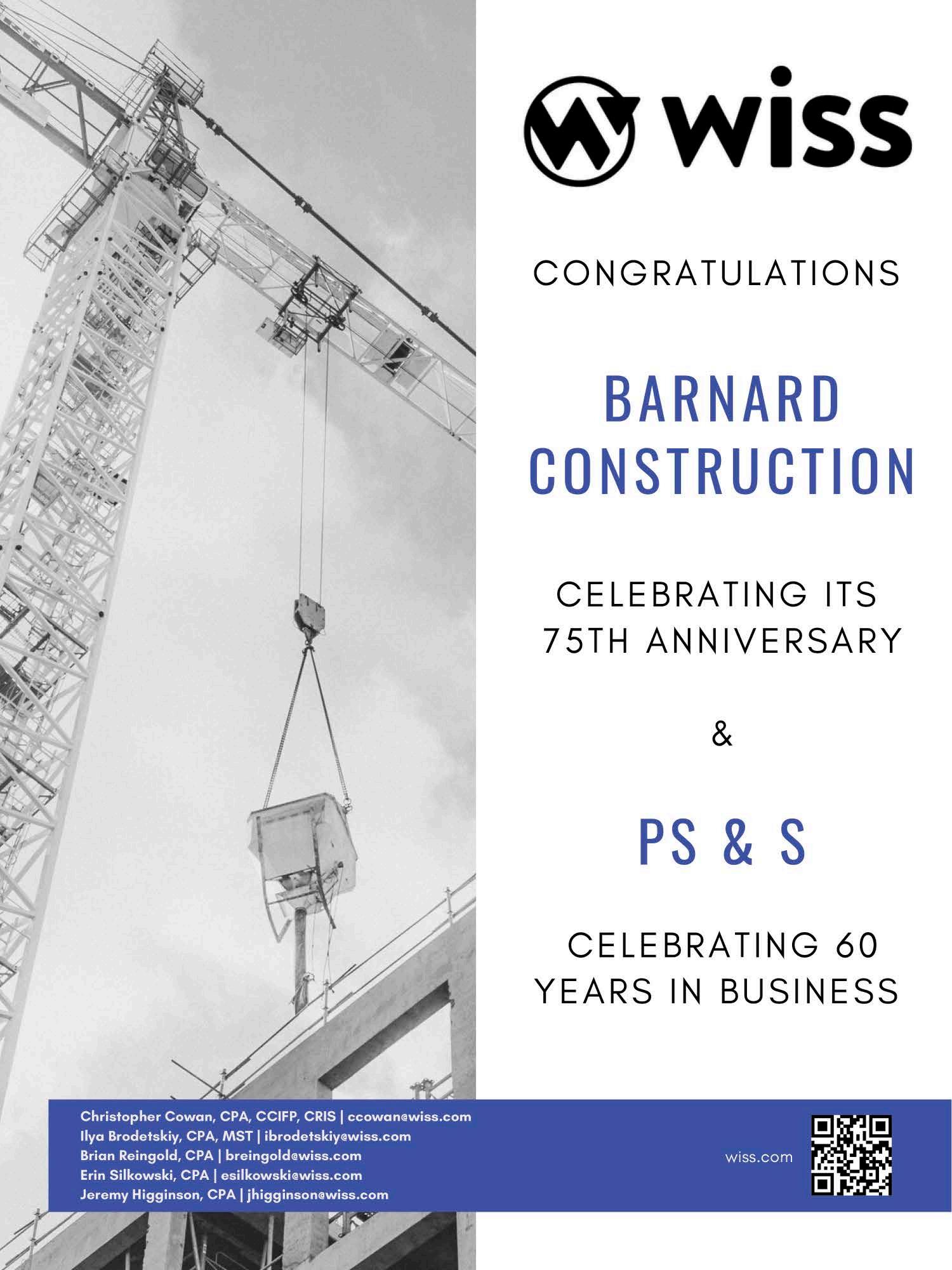 Lastly, I want to congratulate Barnard Construction for achieving 75 years in business and PS&S for likewise completing 60 years. Well done!