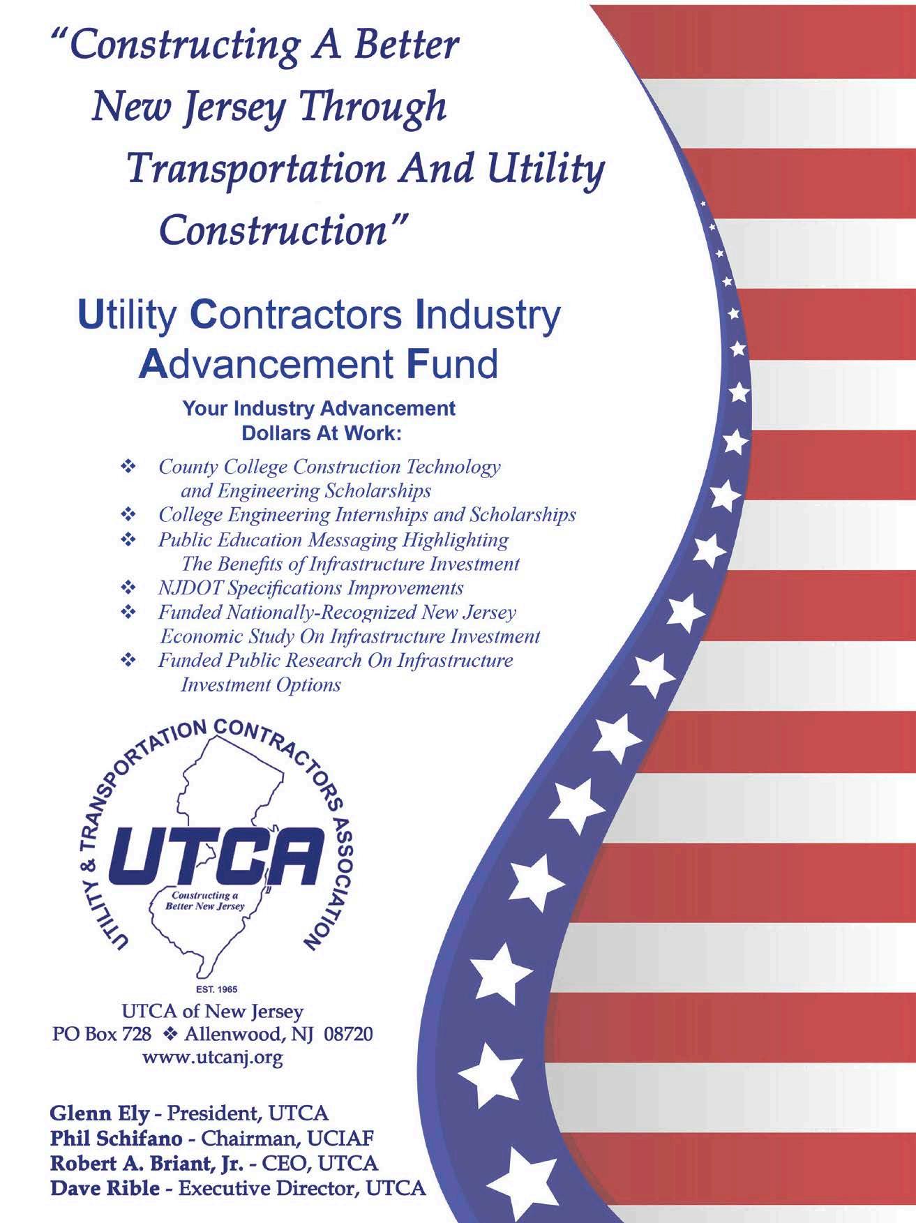 “The UTCA assists its members in achieving success through a collective focus on infrastructure funding, legislative and regulatory advocacy, labor relations, improved working conditions and project-based problem solving. The UTCA strives to achieve an even playing field for fair competition and to drive investment in New Jersey infrastructure for future generations.”