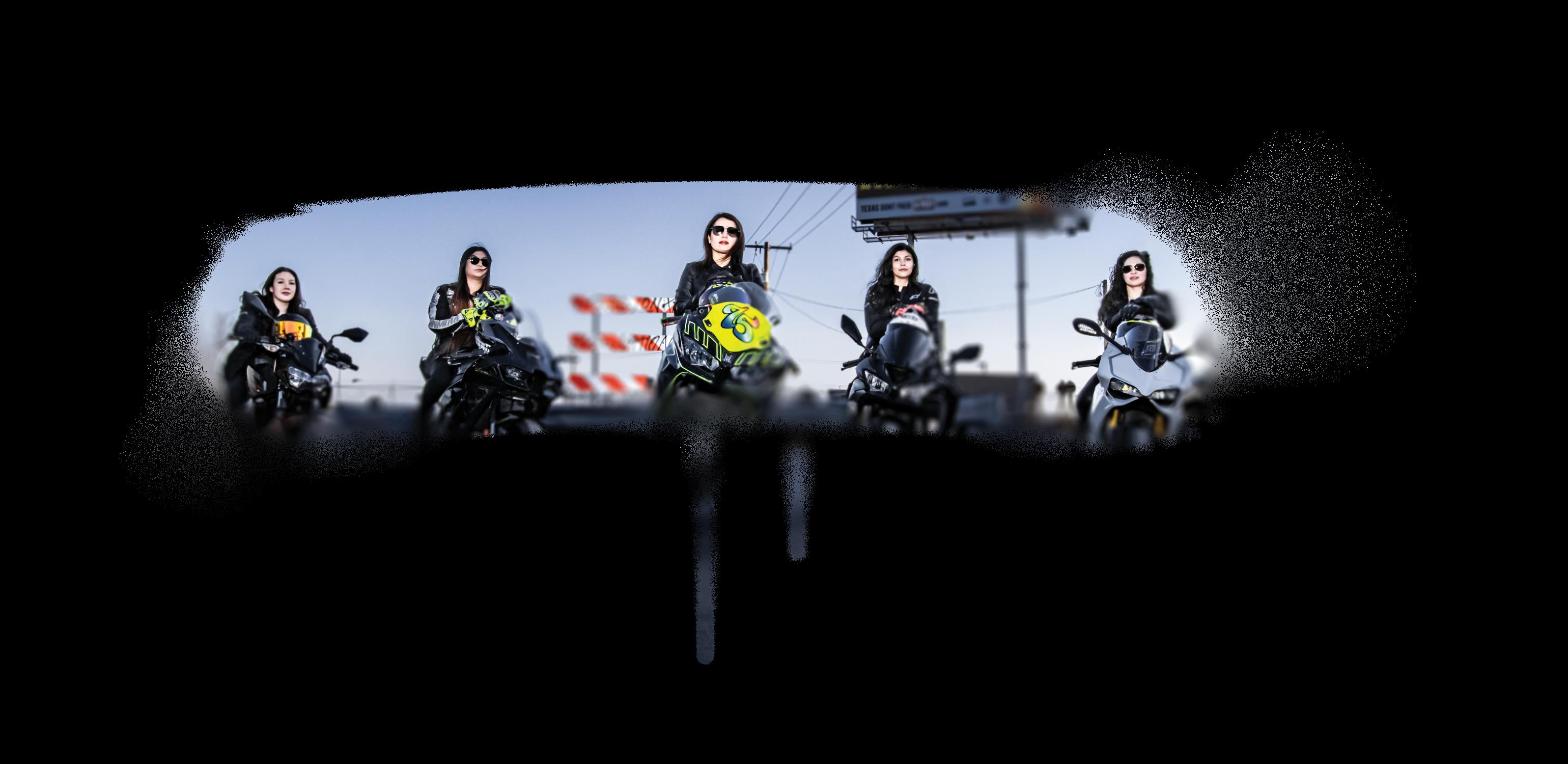 [De izquierda a derecha] Adriana Carrillo, Sylvia Valtierrez, Janeth Edwards, Michelle Sapien, y Cynthia Arceo les gusta la adrenalina que conlleva conducir motocicletas.
