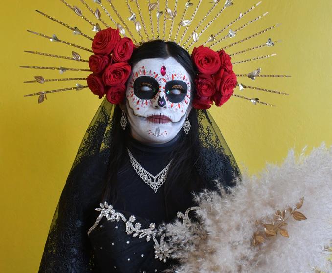 on una nutrida participación estudiantil, así como trabajadora, y luego de haber atravesado un periodo de distanciamiento debido a la emergencia sanitaria por COVID-19, retornó a la Universidad Tecnológica de Querétaro (UTEQ) la celebración del Día de Muertos de forma presen cial, con concursos de ta petes, catrinas y catrines, calaveritas literarias, ade más de videos “Honrar a nuestros antepasados”.