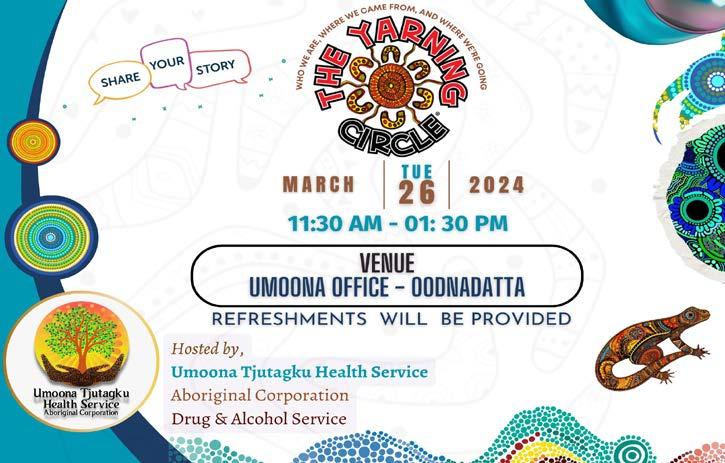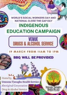 DAS NIAS and AOD social workers conducted National Close the Gap Day on Thursday 21 March 2024. National Close the Gap Day advocates for health equity of Australia’s Indigenous people and educating the public about the health issues and barriers to well-being faced by them. This Close the Gap Day event conducted at Oodnadatta on 21 March 2024 from 11.30 am to 1.30 am and event was dedicated to fostering inclusivity and advocating for a healthier, more equitable world. The event included yarning circle about the health issues, methamphetamine addiction in the first nation communities and barriers to wellbeing faced by Australia’s indigenous people.
