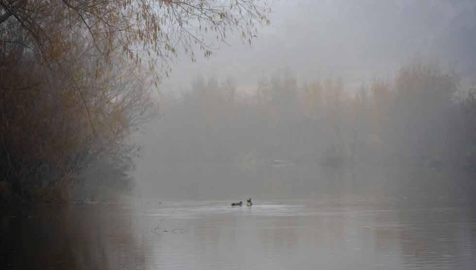 Two ducks in the early morning fog on the San Antonio River on the first day of 2023. The fog gave the colored trees and river an Impressionistic appearance. The scene was photographed south of Mission Concepción with a Nikon Z7ii.