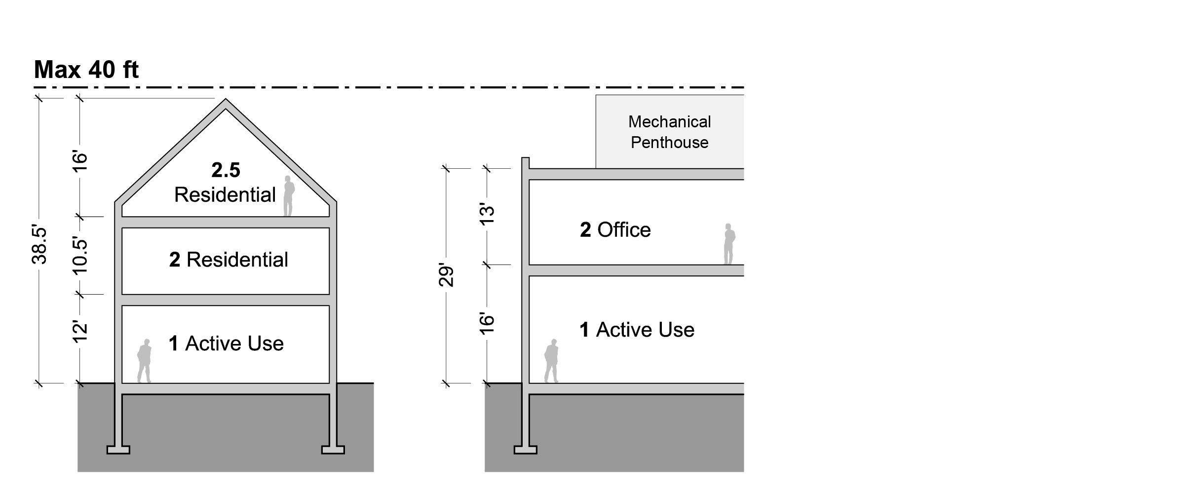 b. Multi-story buildings with ground floor Active Use spaces must have one (1) principal entrance for each Active Use space in addition to any principal entrance(s) necessary for any upper stories.