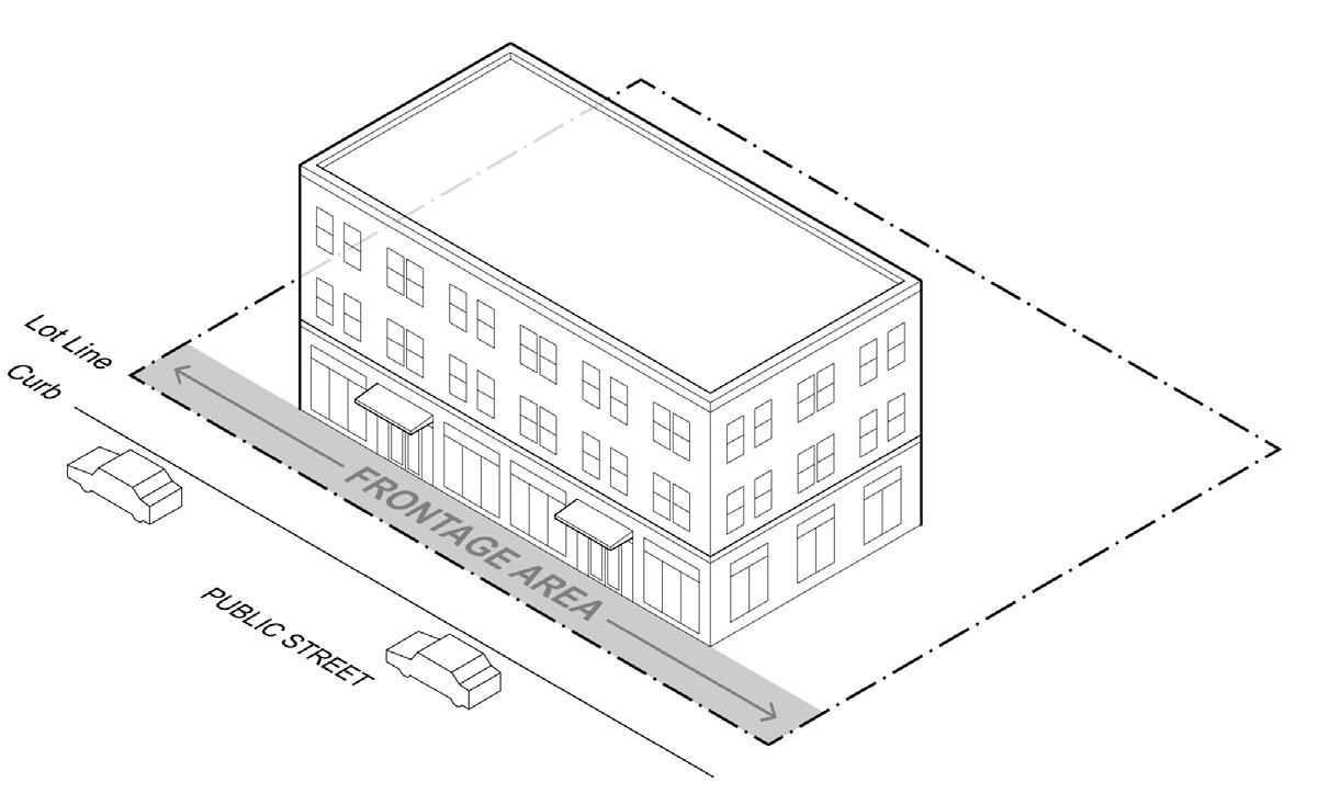 a. Frontage types provide access to principal entrances and serve as the interface and transition between the private realm (building interiors) and the public realm (sidewalks and public spaces) and are defined by a combination of site features and façade characteristics.