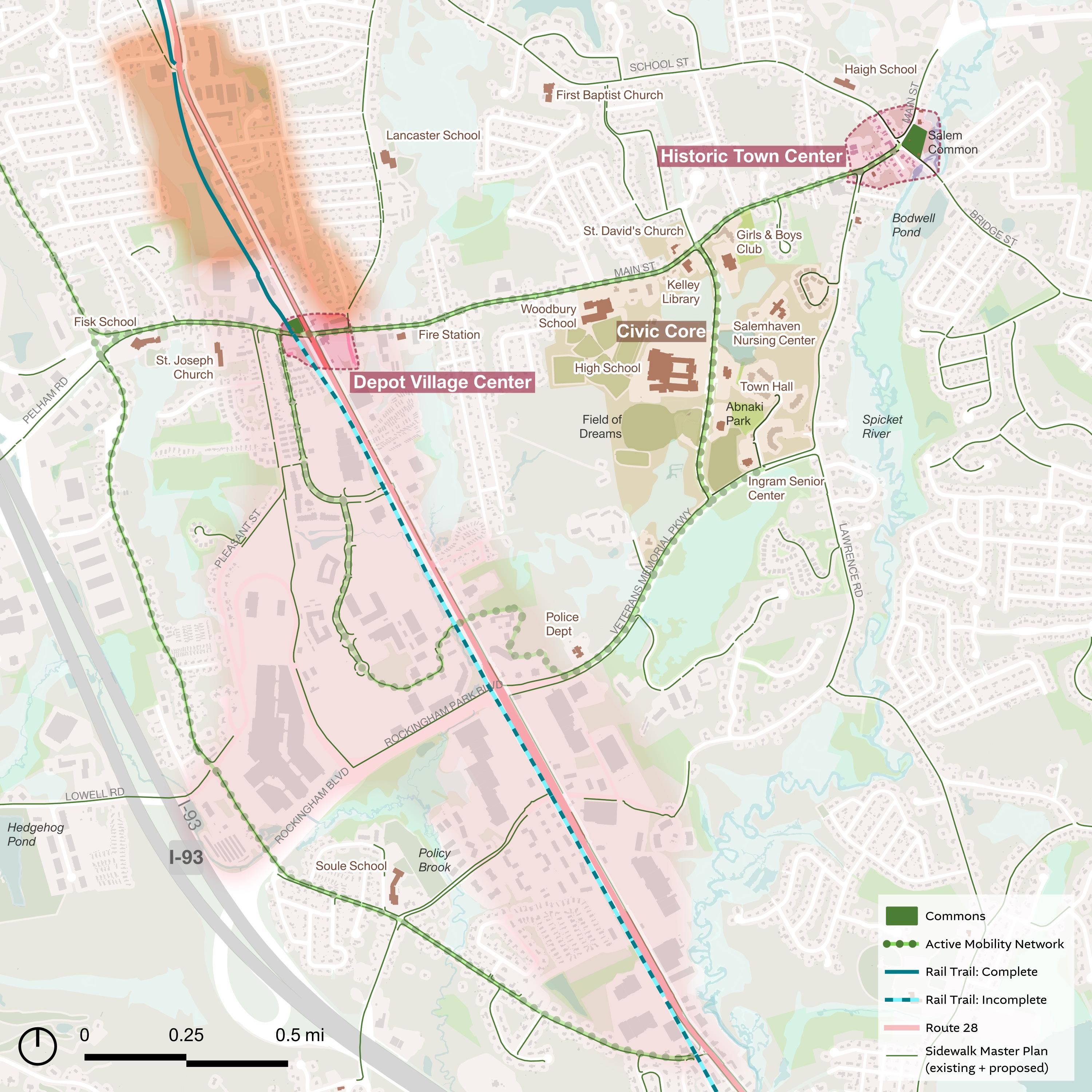 • Develop additional public parking to support the Rail Trail trailhead at the former Salem Depot station