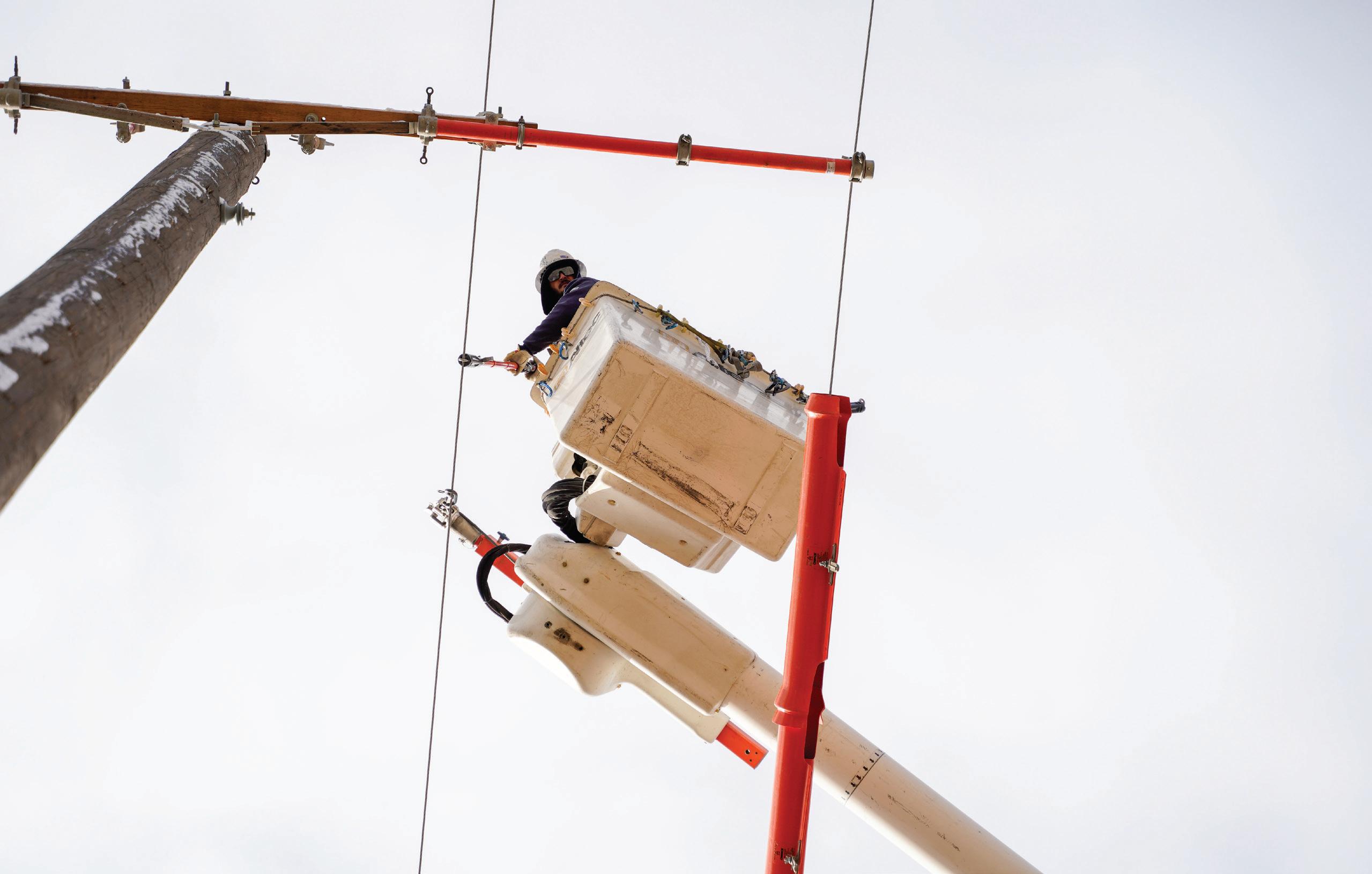ABOVE: In his free time, Shelby enjoys hunting. RIGHT: Shelby makes repairs to an MEC power pole.