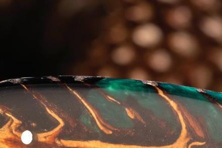 Each pinecone — and therefore, each knife — has its own unique characteristics. And the back of the handle features hand tooling, a further demonstration of each piece’s individual nature.