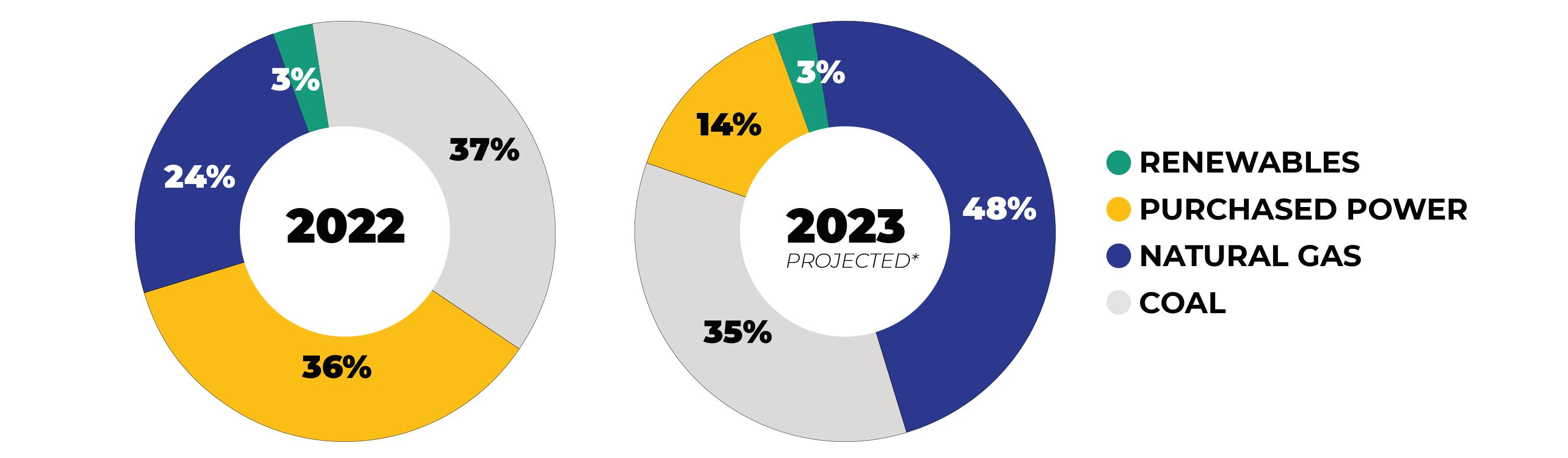 We’re planning to use more electricity generated from renewable energy sources, but we still depend on a diverse energy mix to ensure reliable power that’s available to members whenever they need it.
