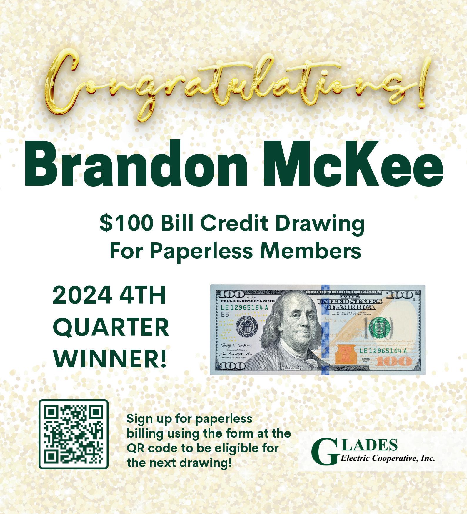 You can view a recording of the meeting April 10 on our Facebook page, the 2025 Annual Meeting webpage or the Glades Electric Cooperative YouTube channel for all the results and to see how you fared in the prize drawing. I’m already thinking about next year’s event and encouraging more participation with 10 $500 bill credits. Stay tuned.