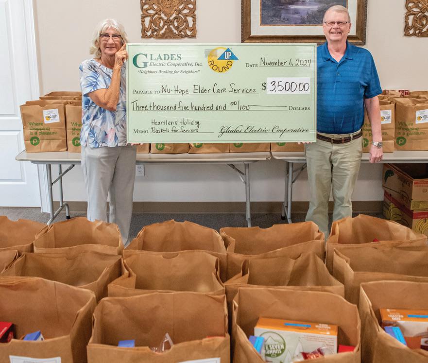 Thanks to donations from members who participate in Operation Round Up, the Glades Electric Charitable Trust awarded a $3,500 grant to Nu-Hope Elder Care Services to provide a holiday food delivery to seniors in need. This initiative has been supported by Operation Round Up members and the GECT board for many years, helping hundreds of seniors have a hearty holiday meal.