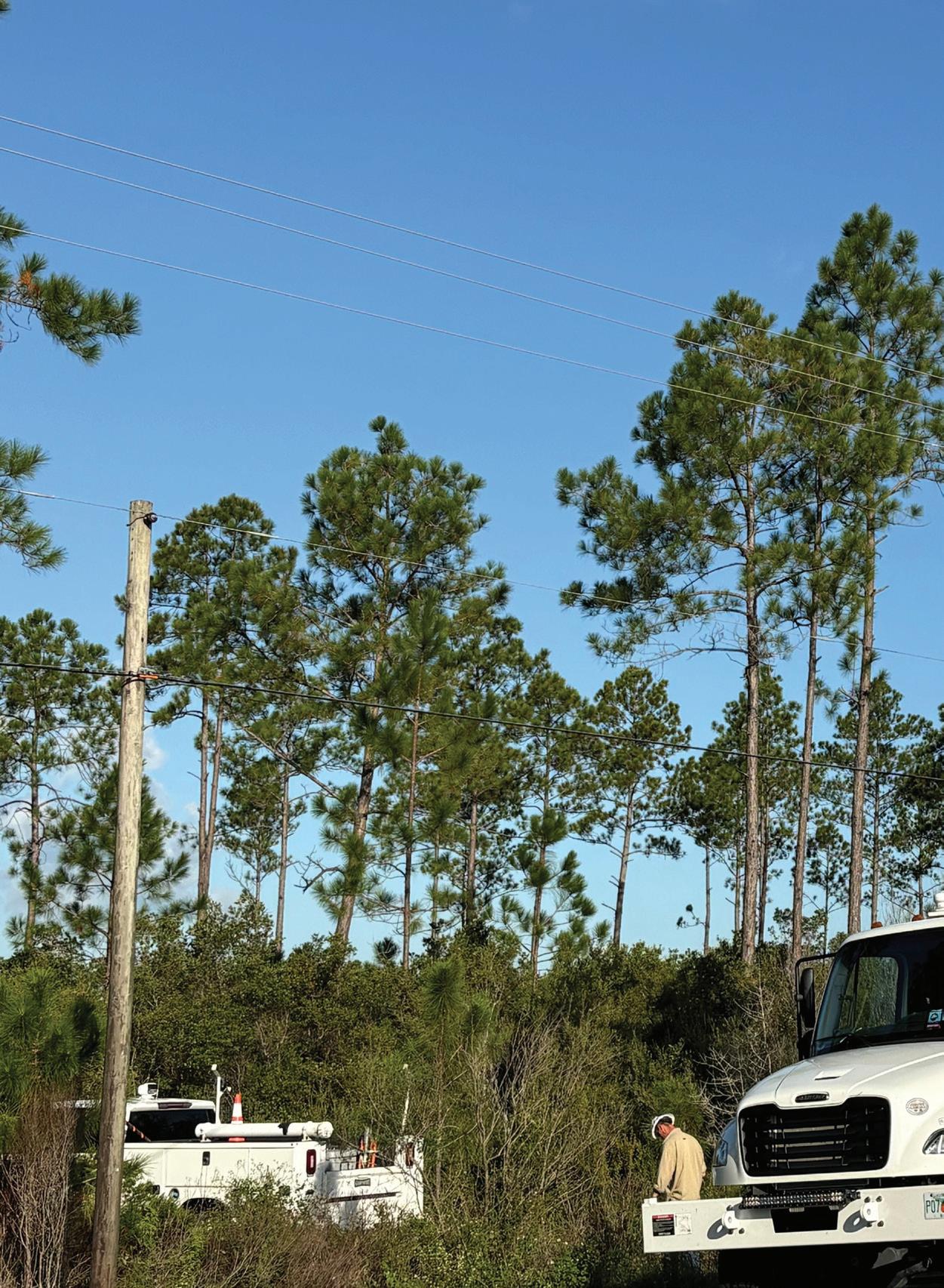 On Oct. 5, Gulf Coast Electric Cooperative sent 11 employees to Excelsior EMC in Metter, Georgia, where 3,553 members were still without power. Our employees remained in Georgia until Oct. 8. At that time, only 40 of the co-op’s member-owners remained without power, so the GCEC crew traveled to Gainesville to assist Clay Electric Co-op once Hurricane Milton passed. We are proud of our employees’ dedication and appreciate the sacri ces they and their families make.