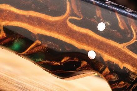 Each pinecone — and therefore, each knife — has its own unique characteristics. And the back of the handle features hand tooling, a further demonstration of each piece’s individual nature.