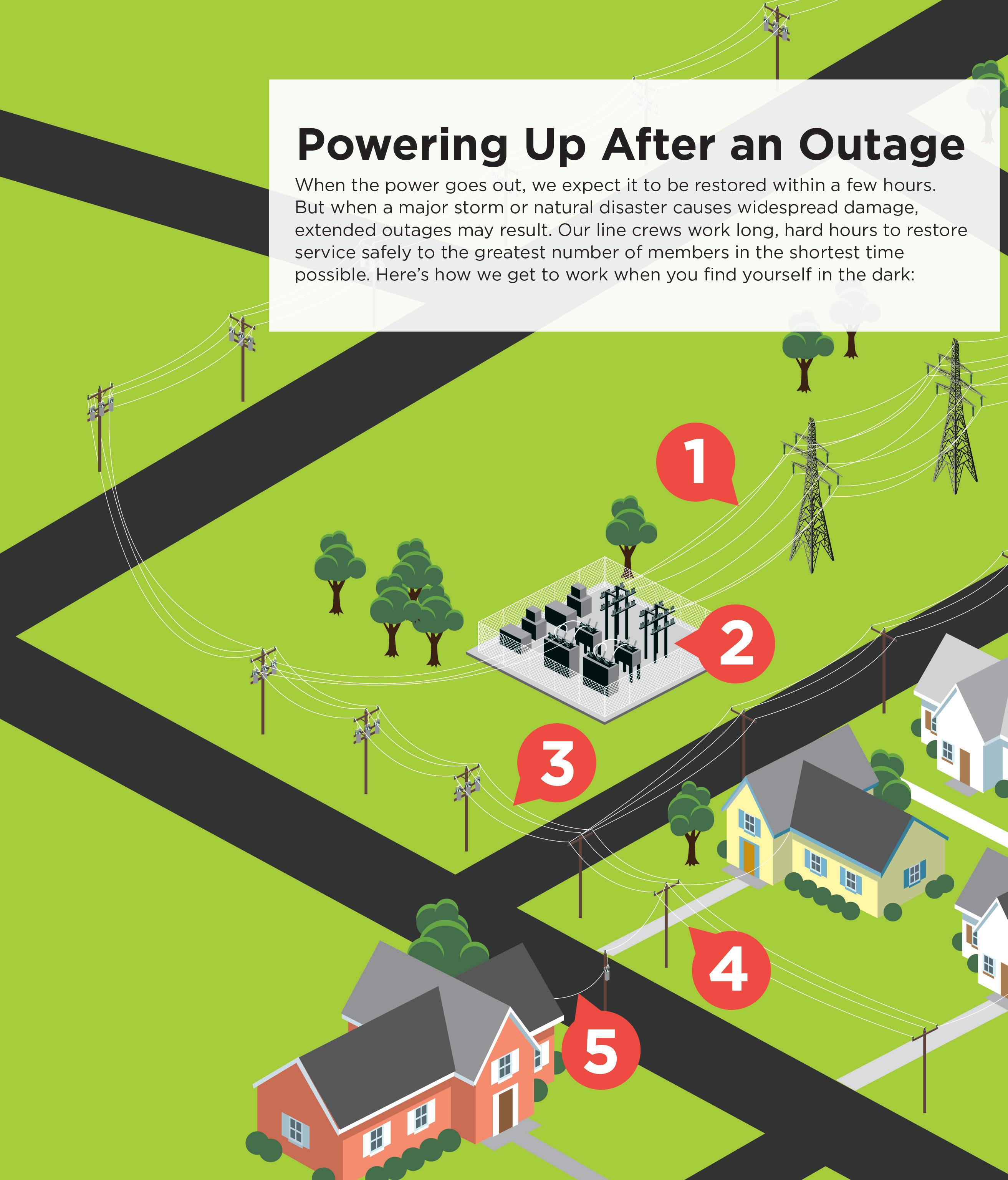 But due to natural hazards, such as trees, limbs and small animals contacting the power lines, outages are sometimes unavoidable. When tropical storms and hurricanes strike, prolonged outages almost always follow.