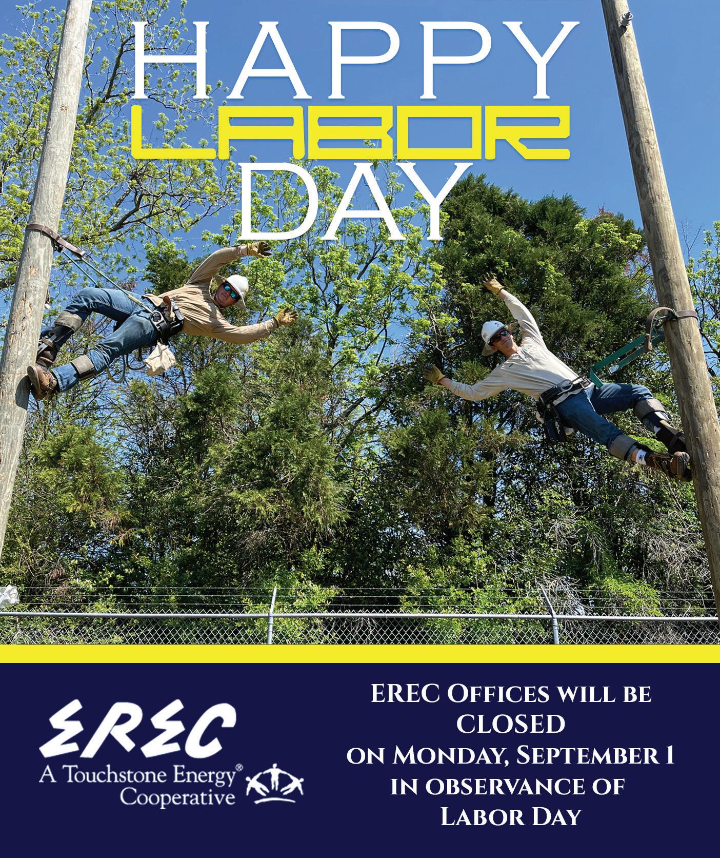 EREC OFFICES WILL BE CLOSED MONDAY, SEPT. 1, IN OBSERVANCE OF LABOR DAY