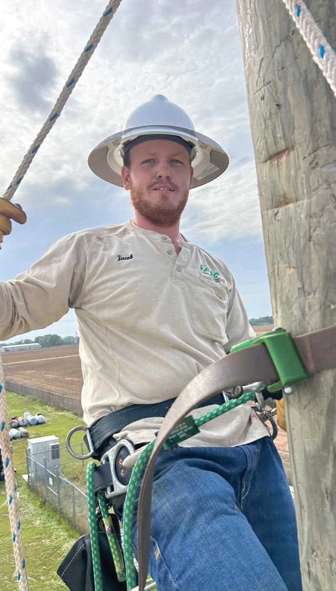 Lineworkers Jacob Roberts, above, Jacob Polk, left, and JD Atkins, opposite page, take the steps in becoming Escambia River Electric Cooperative lineworkers.