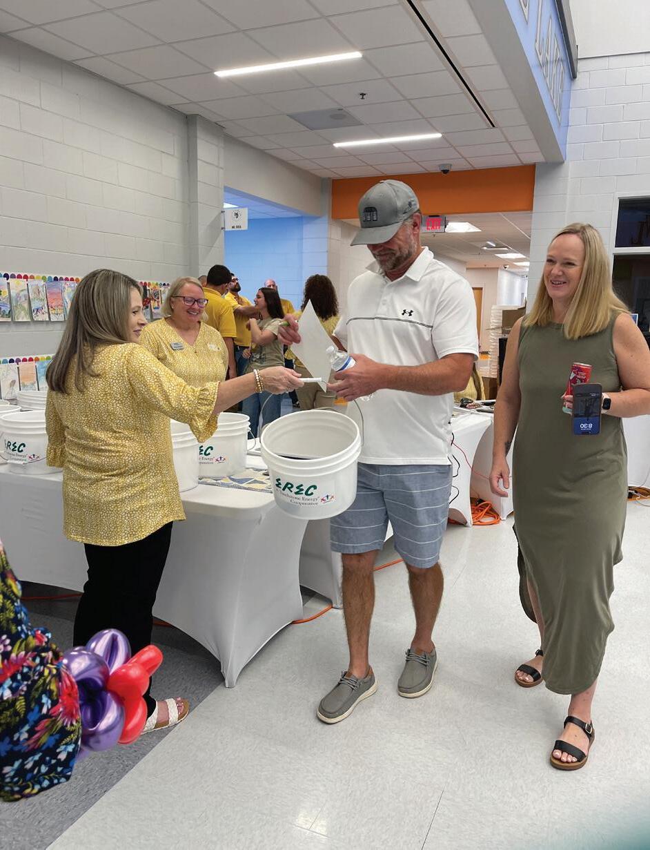 BOTTOM ROW FROM LEFT: The Conexon vendor speaks with a member. Door prizes were awarded throughout the day. The grand prize winner received a $500 bill credit. Members receive registration gifts. Mr. Pig pays a special visit. PHOTOS BY CORTNEY OWENS