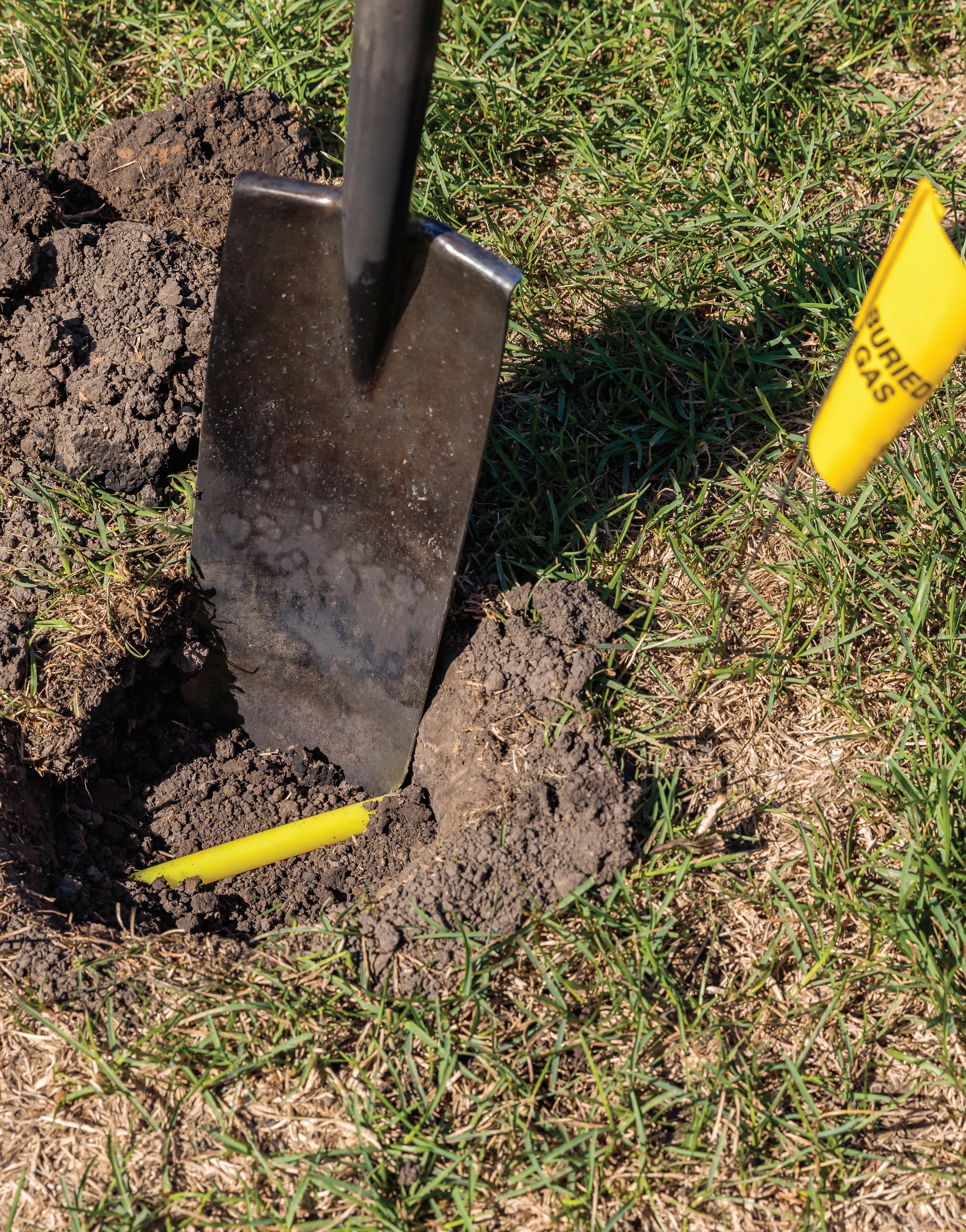 When you call 811, a representative visits your site to mark the approximate location of underground infrastructure, such as buried gas and electric lines. ADOBE