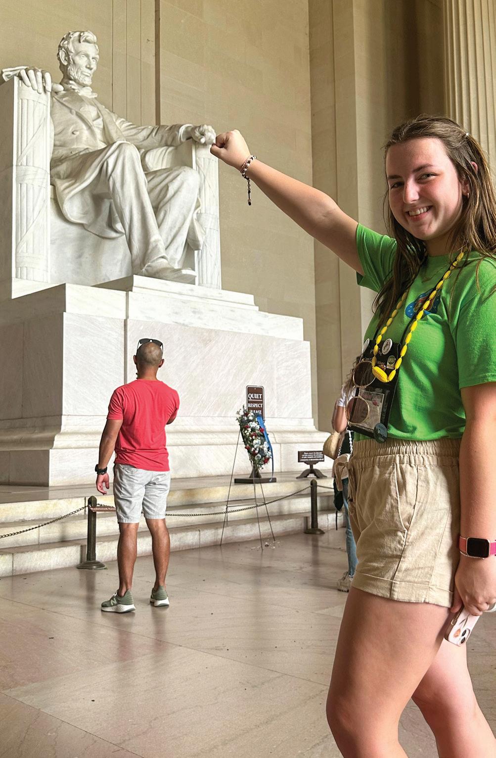 RIGHT: Lillie Lynch, a 2024 DEMCO Youth Tour alumna, fist bumps the Abraham Lincoln statue inside the Lincoln Memorial. BOTTOM RIGHT: Beauregard Electric Cooperative Inc.’s 2024 Youth Leadership Council representative, Madelyn Bailey, stands in front of the U.S. Capitol.