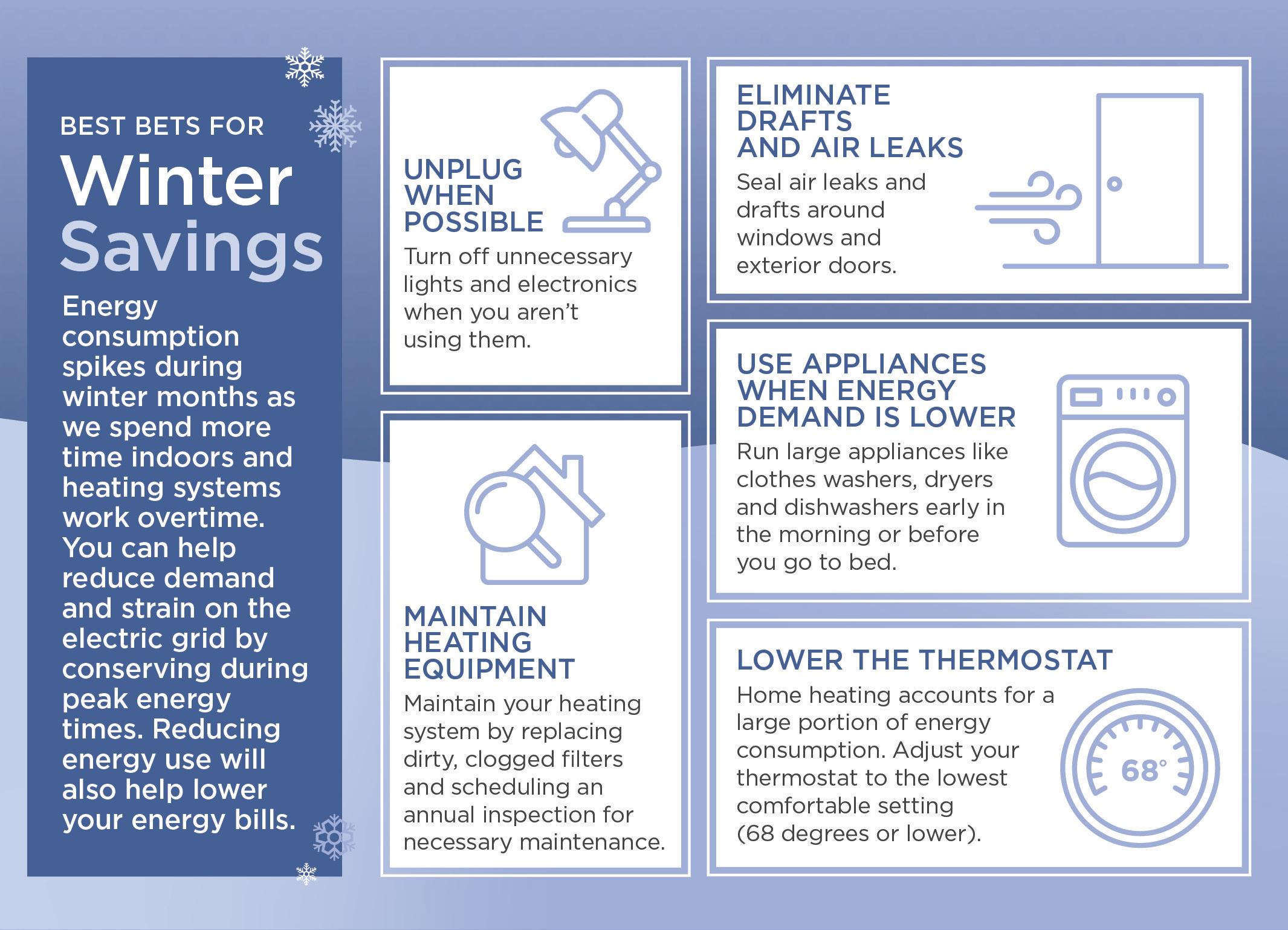 By adopting energy conservation practices during periods of extreme cold, you save money on your electric bills.