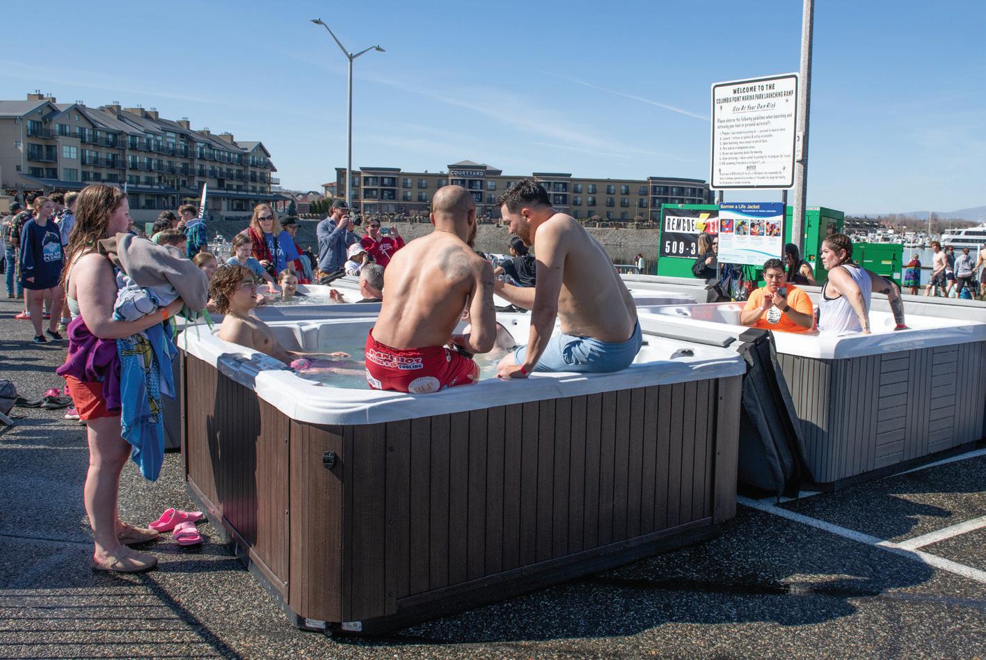 ABOVE: Polar Plungers can warm up from their dive in hot tubs.