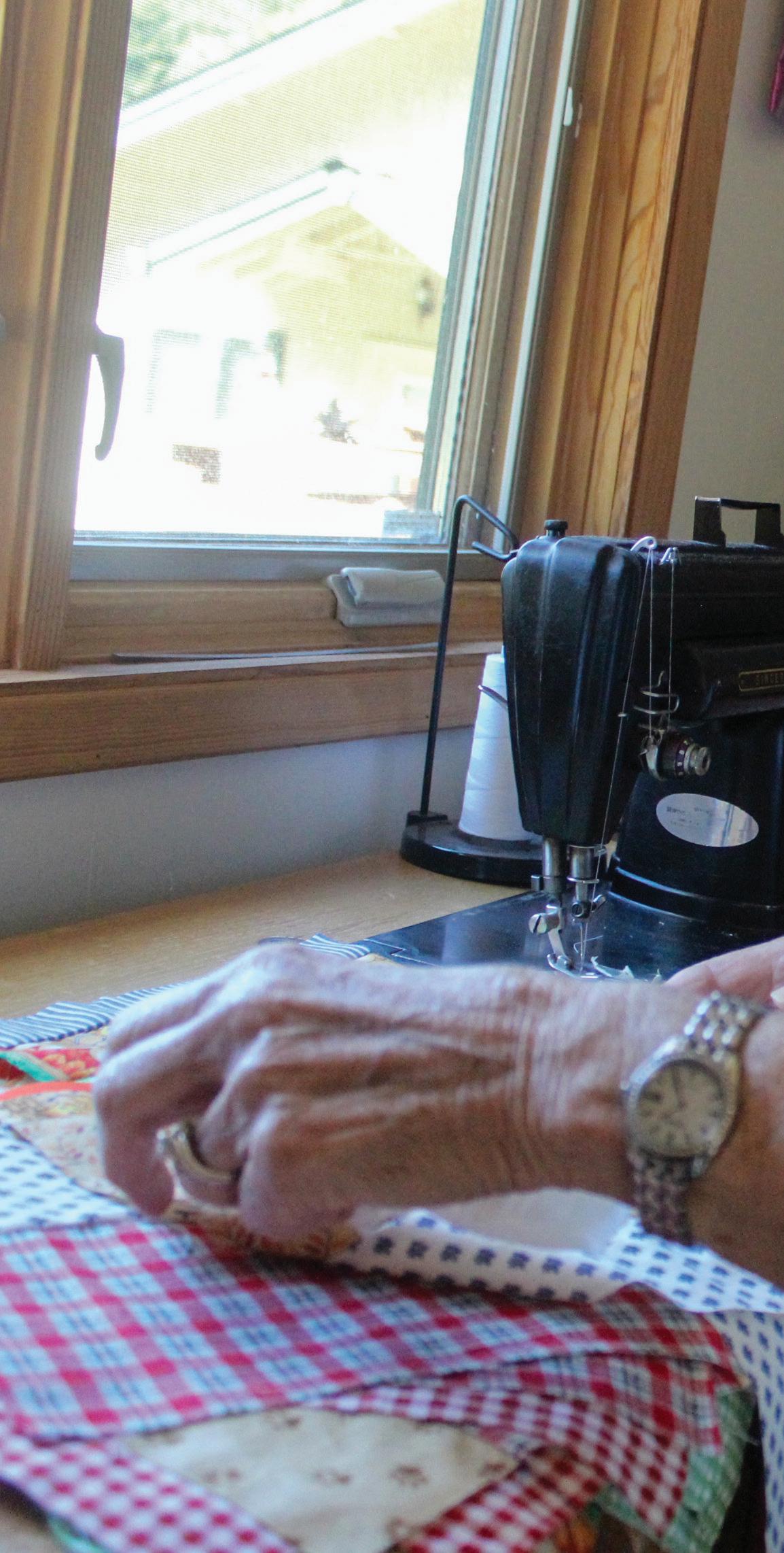 “I bought the most expensive sewing machine at that time,” she says. “I bought it with war bond money my grandparents gave me. The store owner told me it was the best sewing machine ever made. It’s one of the best things I ever did. It’s given me no issues. It would be fun to know how many miles it has gone.”