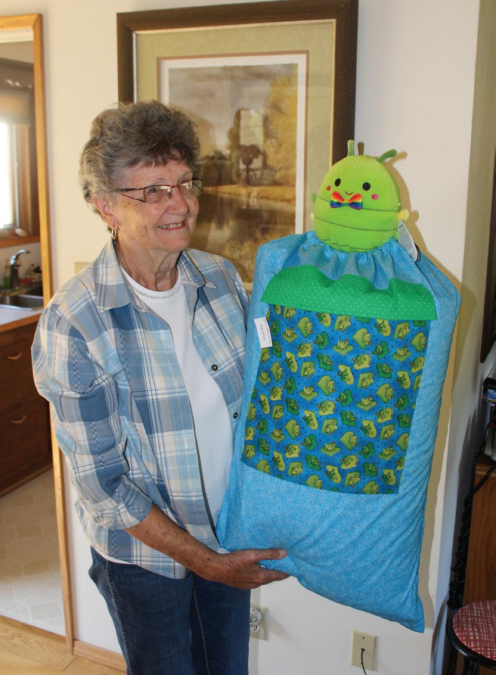 She has made 41 quilts from her own fabric for Bags of Love. She’s also brought