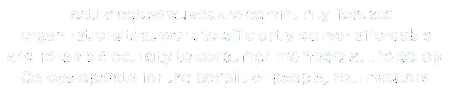 • We put people before profits. Co-ops are not-for-profit and provide at-cost electric service. Any excess revenue is returned to our consumer-members in the form of capital credits.