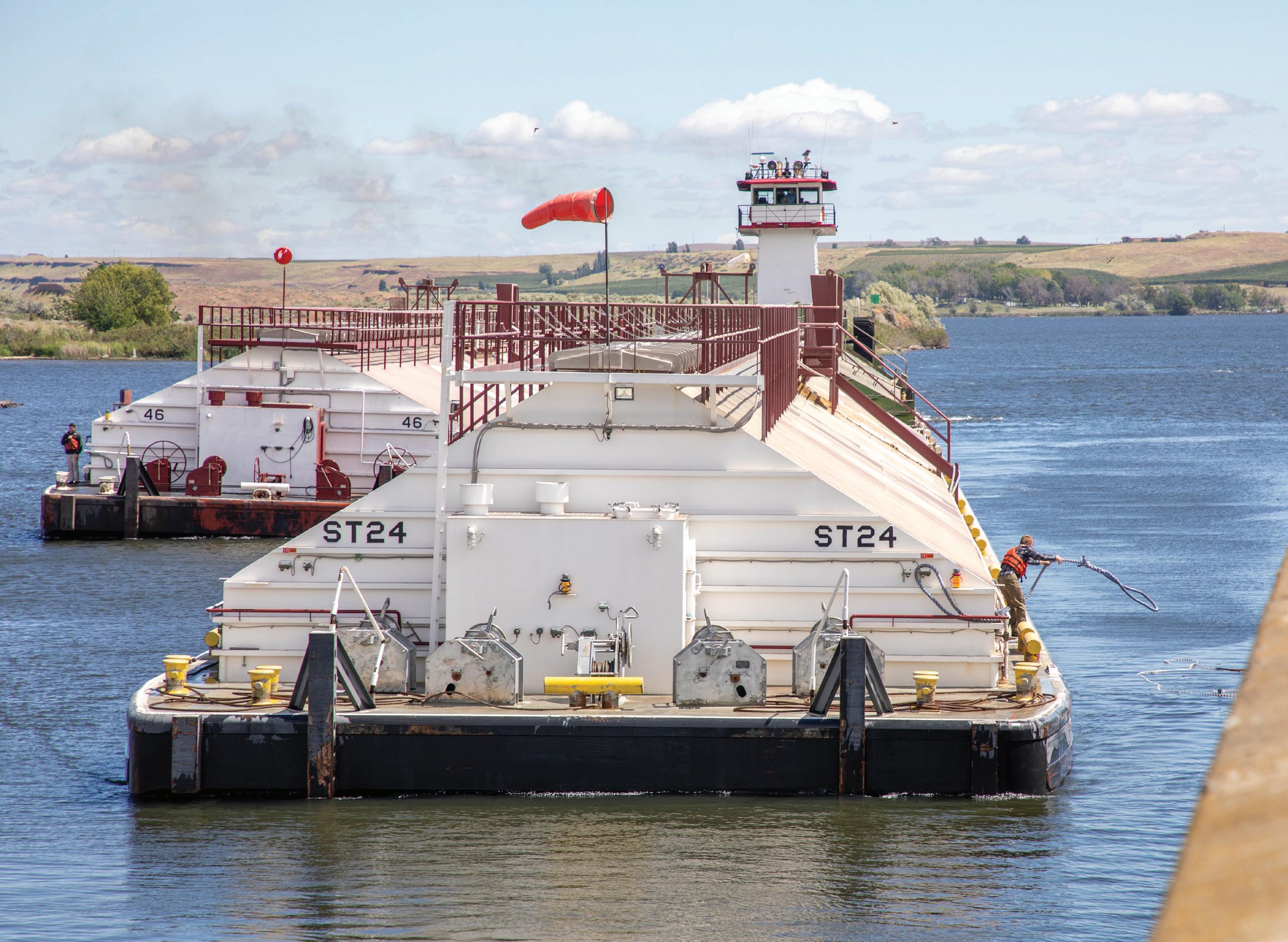 One barge can carry as much as 35 jumbo-hopper train grain cars or 134 semitrucks. A four-tow barge, the maximum size that fits in a lock on the lower Snake River, can replace 140 train cars or more than 538 semitrucks. In addition, according to Anderson, one barge can move a ton of wheat 647 miles per gallon of fuel, while a semitruck can only move a ton of wheat 145 miles per gallon.