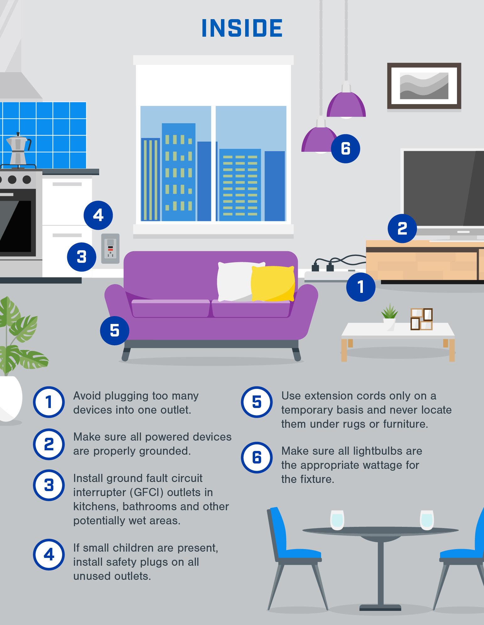 7. Educate family members. One of the best ways to ensure the safety of everyone in your household is to talk about electrical safety. Teach children not to play with electrical outlets or appliances, and ensure they understand the potential dangers of electricity. Create and practice a home fire escape plan that includes electrical safety precautions in the event of an emergency. Practicing electrical safety at home is essential for protecting your family, property and peace of mind. Remember, electrical safety isn’t just a one-time effort—it’s a year-round responsibility. Taking these steps can help ensure a safer, more secure home for you and your loved ones. n