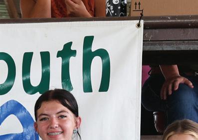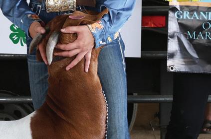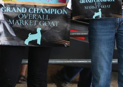 Columbia REA’s Charlie DeSalvo joins Harlee Coulston and her Grand Champion goat, one of 18 animals purchased by Columbia REA at the Frontier Days Cattlemen’s Youth Market Sale.
