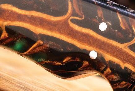 Each pinecone — and therefore, each knife — has its own unique characteristics. And the back of the handle features hand tooling, a further demonstration of each piece’s individual nature.