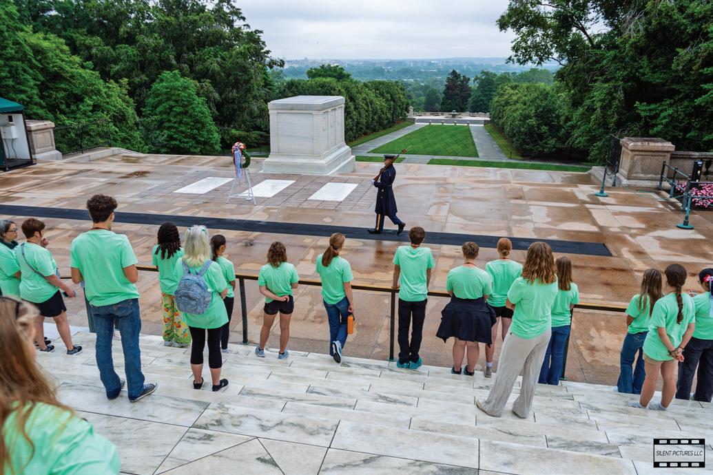 CLOCKWISE FROM ABOVE: Skylla Laron, standing at far left, joins fellow Oregon students on a visit to the World War II Memorial. Skylla and the group of Oregon students visit the Tomb of the Unknown Soldier. Oregon teenagers are among 2,000 high school students from across rural America who attend the Washington Youth Tour every year. PHOTOS COURTESY OF SILENT PICTURES LLC