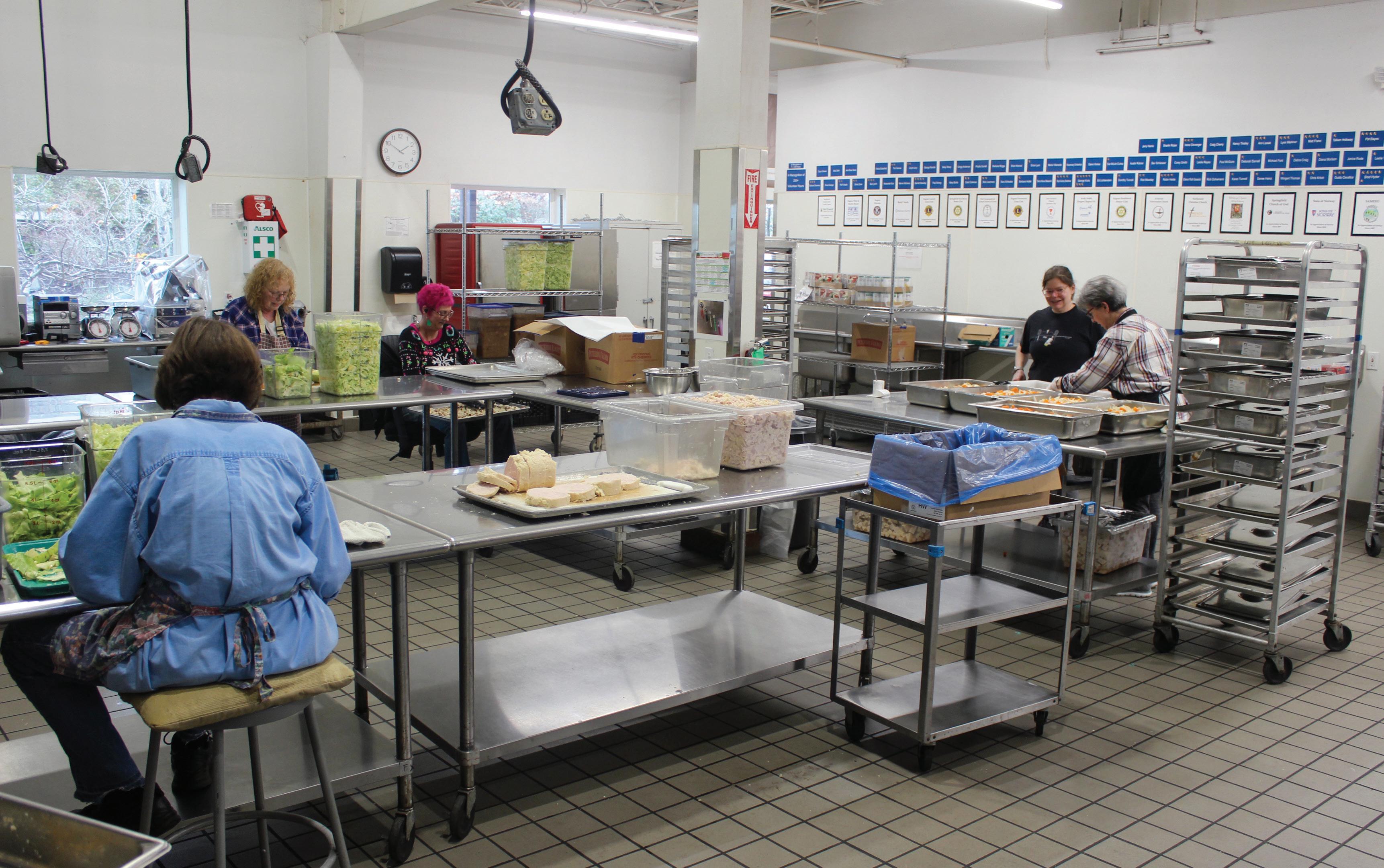 Dan Budd, FOOD For Lane County volunteer coordinator and kitchen manager, has worked at the nonprofit for 31 years. BELOW: Volunteer Dave Phillips cuts up turkey to be packaged and distributed to the nonprofit’s food banks. OPPOSITE PAGE: Eighty paid employees and 3,500 volunteers accomplish FOOD For Lane County’s goal of getting food to those in need.
