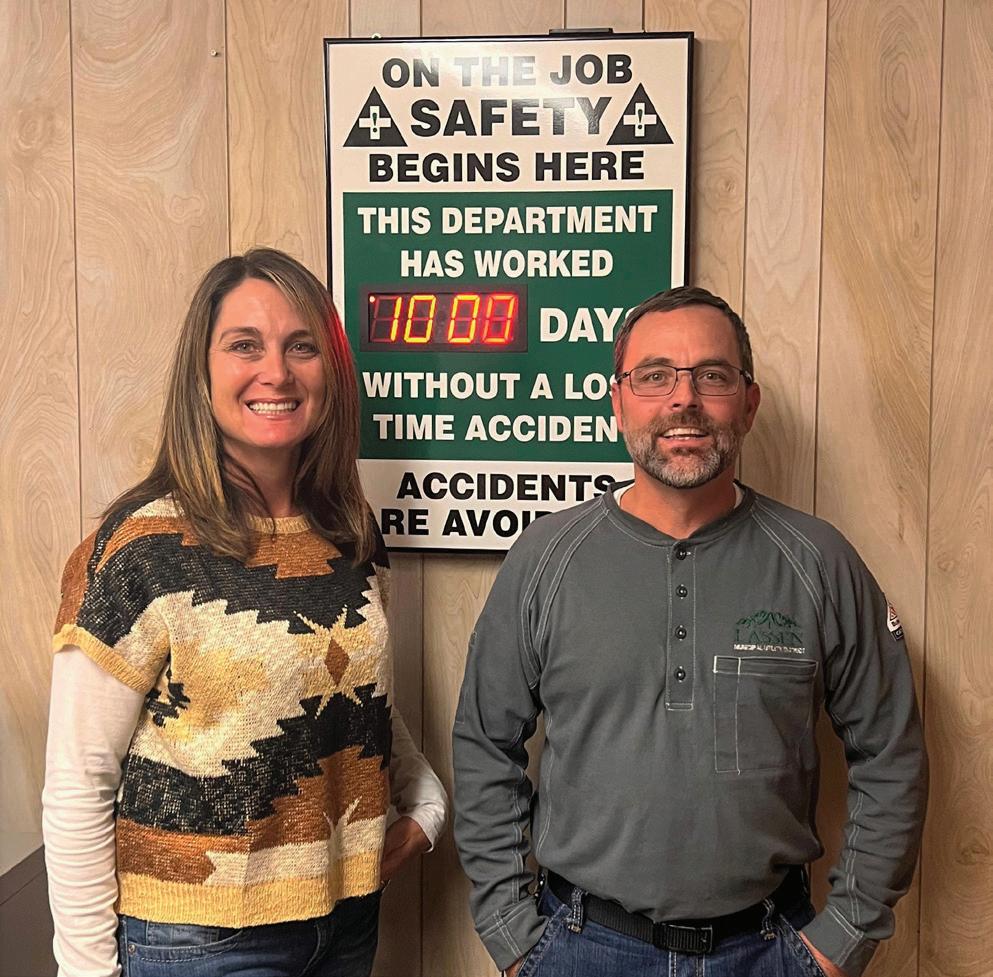 LEFT: AMI technician Lisa Hay and meterman Greg Kitchen celebrate 1,000 days without a lost-time accident.