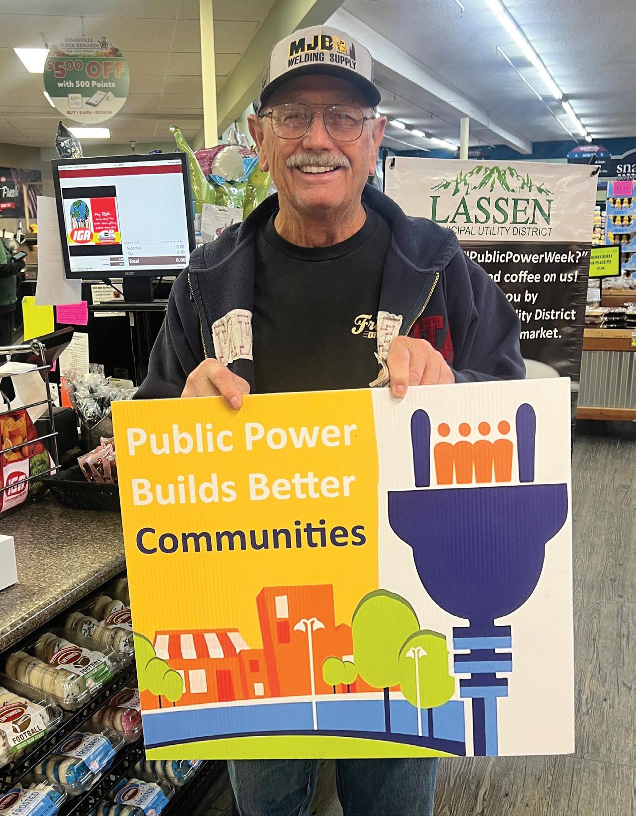 In conjunction with Lassen Humane Society, we collected more than 500 pounds of pet food and treats with our Pet Treats for Lights pet food drive. We shared lunch with hundreds of customers at our 18th annual Customer Appreciation Celebration. During Public Power Week, we hosted a bakery takeover at Susanville Supermarket, where customers were treated to a free doughnut and hot beverage. Our crews supported the community by lending a hand with the setup of the community Christmas tree and continued the decadeslong tradition of hanging holiday lights across Main Street. They also volunteered their time and talents to honor our local servicemen and women by hanging Blue Star banners.