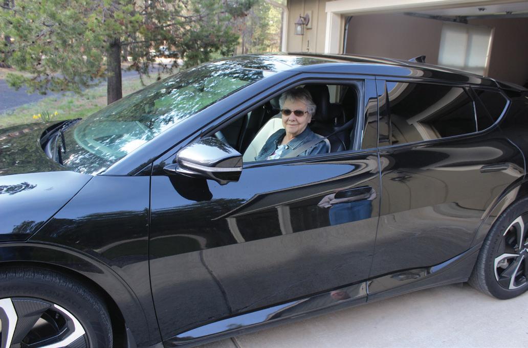 BELOW: Marian likes her Kia EV6 because of its saving on fuel cost, its quiet ride and its energy, saying, “It just feels good.”