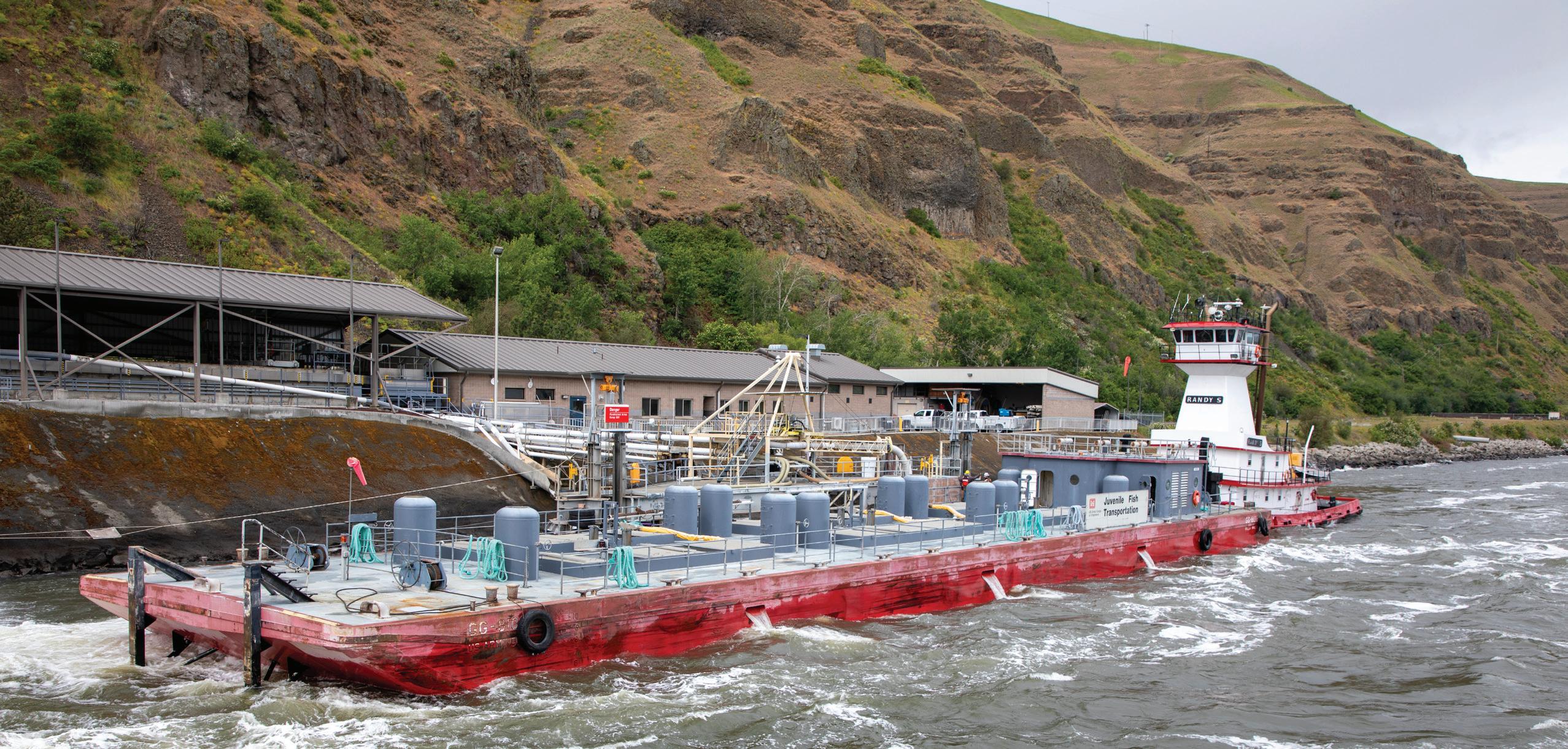 The Army Corps of Engineers barges millions of fish each year, beginning at Lower Granite Dam and dropping off the fish below Bonneville Dam. Throughout