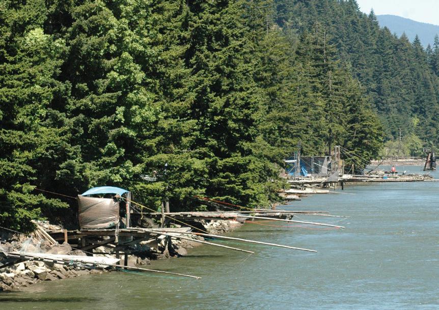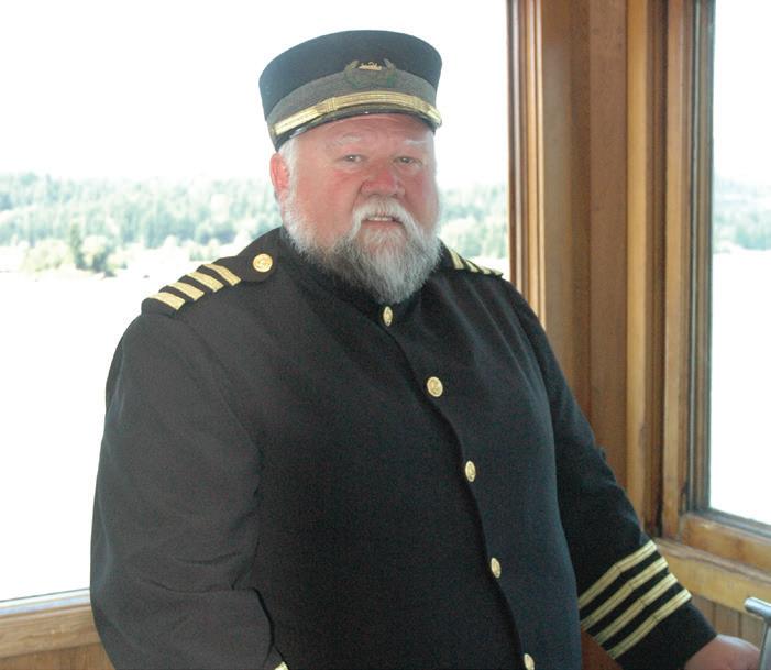 LEFT: Native American fishing platforms line the north shore of the Columbia, as seen from the Columbia Gorge. FAR LEFT: Capt. Tom Cramblett began as a deckhand and worked his way up to engineer and eventually captain. He also spent eight years as mayor of Cascade Locks. BELOW LEFT: Passengers on the Columbia Gorge have a chance to get close to a cormorant colony on a rocky island just east of Bonneville Dam. PHOTOS BY RODGER NICHOLS