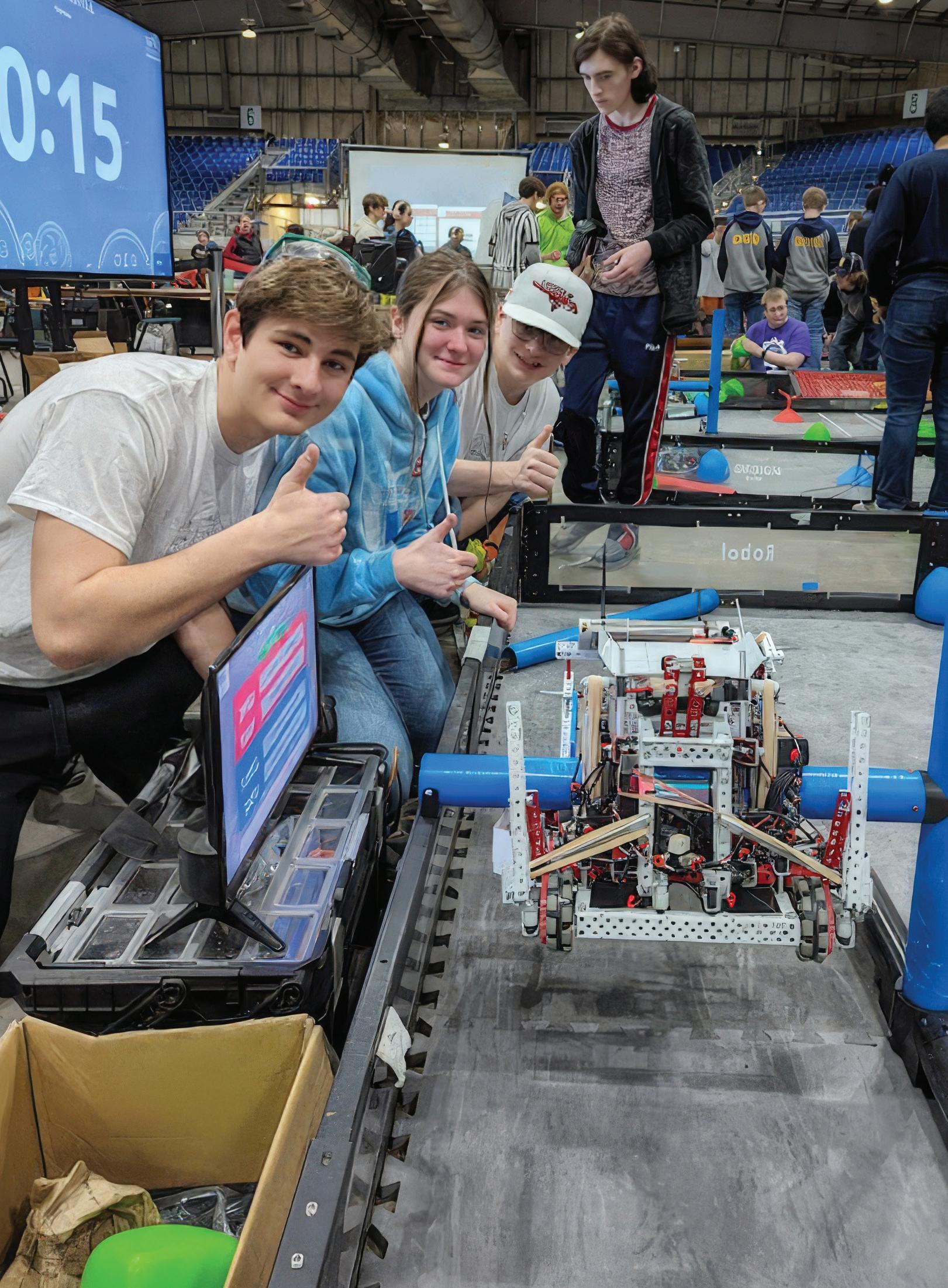 matches. Teams play alone, trying for the highest score they can achieve in one minute. The first match tests the team’s driving ability, and the second tests how well the robot can perform on its own while running on a program designed by the students.