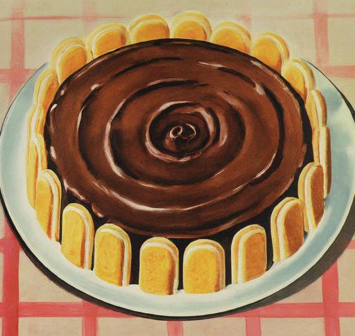 1/4 cup of cream before whipping for the garnish. Whip the cream until stiff and fold into the chocolate mixture. Arrange the ladyfingers on the bottom and sides of a spring form mold. Pour in part of the chocolate mixture. Chill for several hours or overnight. Serves 8 to 10.