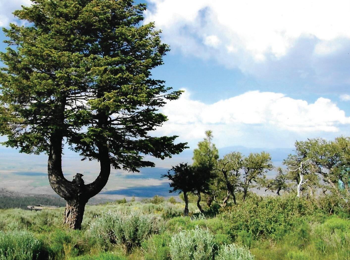 This tree on top of Likely Mountain in Likely, California, has a unique shape. When the fog dissipates, there is a view of the South Fork Valley.