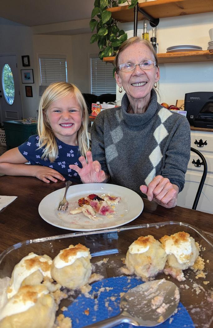 Erna’s youngest granddaughter, Kora Pearl, joins her in making “zwetschgenknoedel,” which is German for plum dumplings. PHOTO COURTESY OF ERNA HECKELE