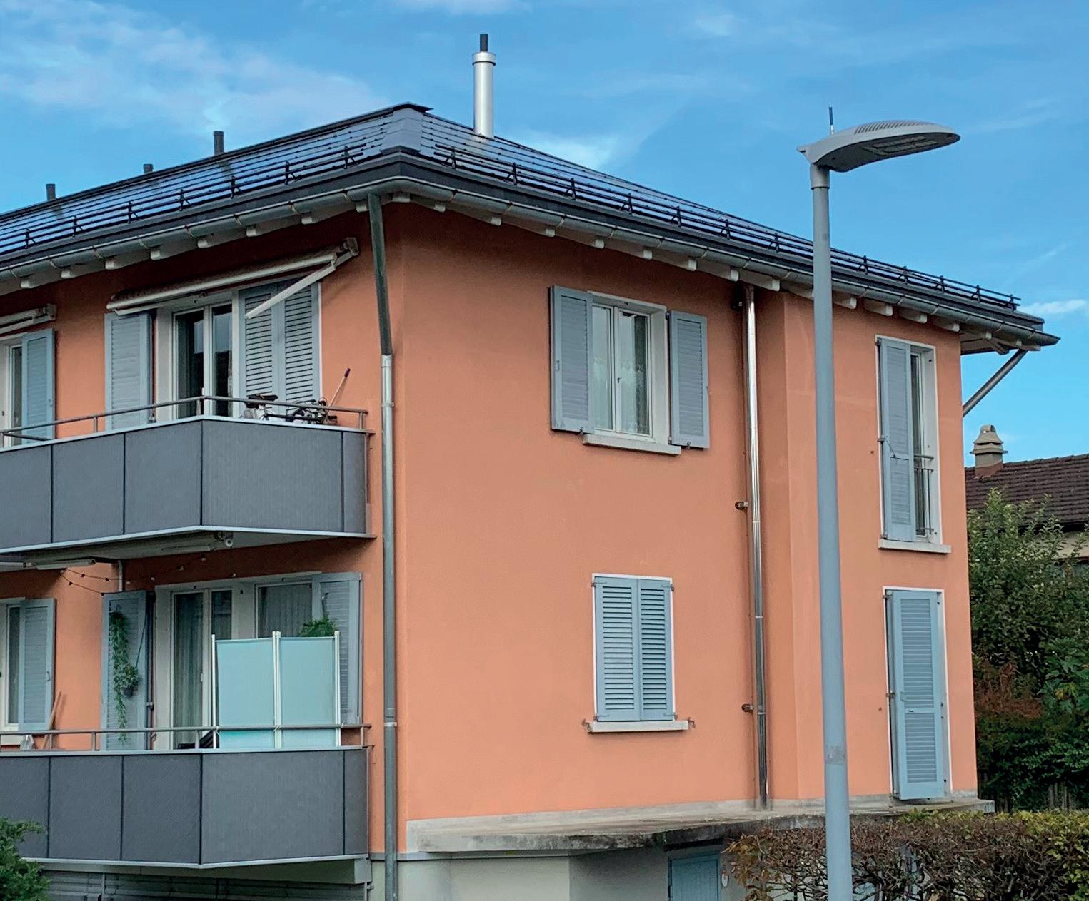 Ohne separate Fassadendämmung wurde der CO2-Ausstoss eines MehrfamilienWohnhauses aus dem Jahr 1956 nachhaltig auf null gesenkt!.