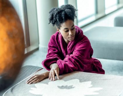 becken oder erlebt die positive Wirkung des kalt-warmen Wechselspiels in der minus 10 °C kalten Schneesauna besonders kreislaufschonend. Und jedem, der sich von Kopf bis Fuß verwöhnen lassen möchte, steht unser Wellness-Bereich zur Verfügung. Bei klassischen und exotischen Massagen, kosmetischen Behandlungen sowie Pflegezeremonien wie dem Rasul werden Körper und Seele in Einklang gebracht. Während man vor oder nach den Anwendungen bei einer Tasse Tee im gemütlichen Ruheraum oder idyllischen Gartenatrium entspannt, spürt man den Alltag wie alten Putz von sich abfallen.