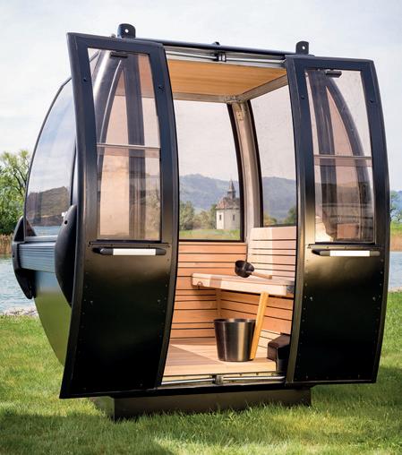 «Die perfekte Verbindung von Upcycling und Zukunft: Küng präsentiert die Saunagondel mit innovativem Kiriholz-Innenausbau.»