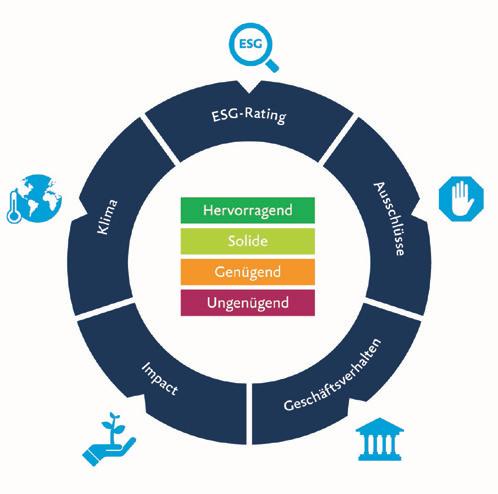 haltigkeit börsennotierter Unternehmen in den Bereichen Umwelt, Soziales und Unternehmensführung. Mit einer selbst entwickelten Methodik verarbeitet und aggregiert das Team Research & Advi sory von acrevis diese Daten und setzt sie für jedes Anlageinstrument im Portfolio in eine acrevis Nachhaltigkeits-Skala um.