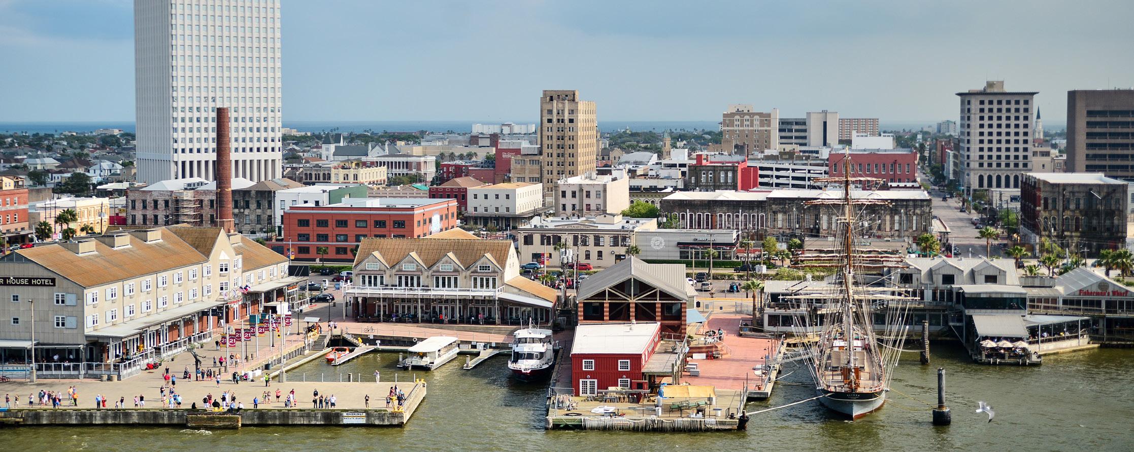 Cover photo: Aerial view from Seawolf Park of the Port of Galveston. UTMB in background left, and Galveston Wharves Cruise Terminals farther into the harbor.