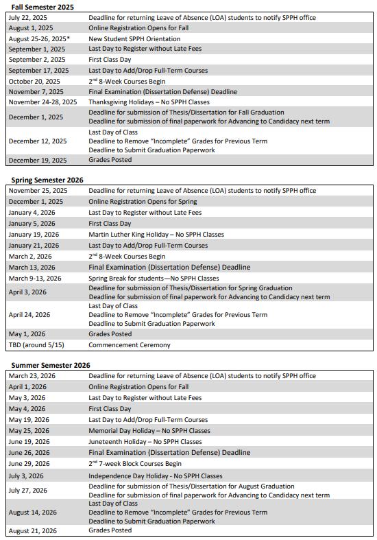 SPPH’s established values and goals guide the Master of Public Health (MPH) to accomplish the SPPH stated mission. Our goals reflect our primary functions: instruction, public health practice, translational research, and extramural service, as well as workforce development, resources and administration, and diversity. SPPH offers the five MPH concentrations that follow: