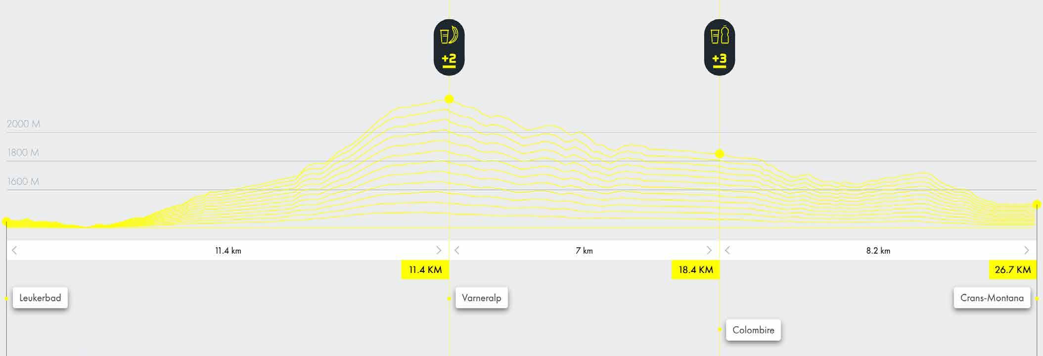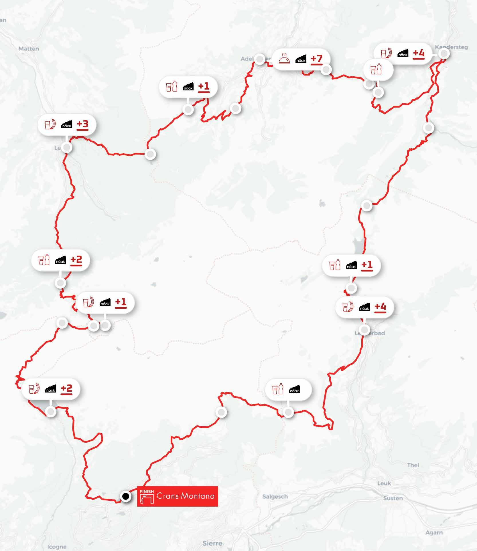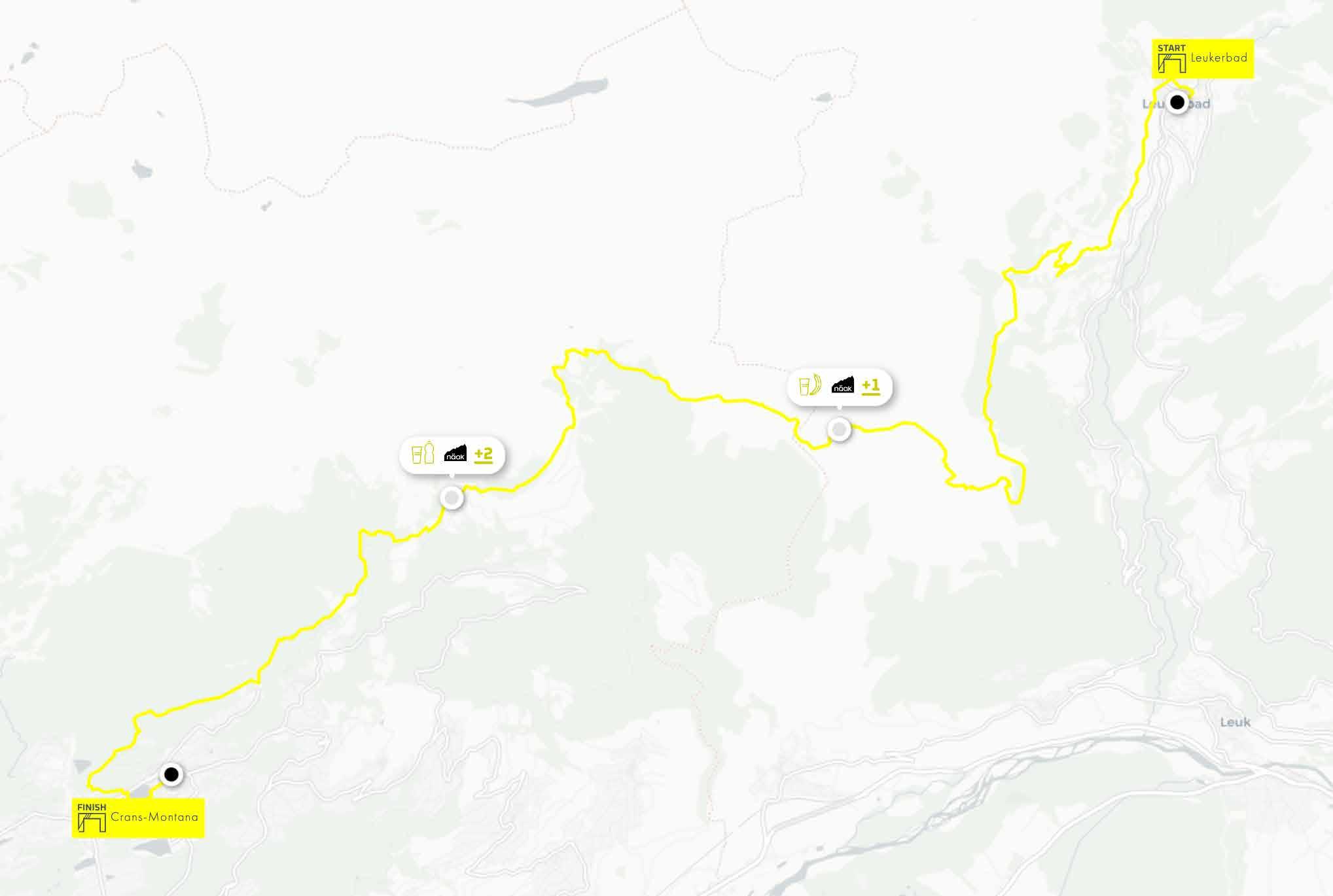 Die Strecke führt über 2 Pässe, mit 2 Anstiegen, 2 Abstiegen, durch 2 Kantone (Wallis und Bern) und einem technischen Anstieg zur Wildstrubelhütte, dem höchsten Punkt der Strecke auf 2’800 m ü. M. Der Start erfolgt im Herzen von Adelboden. Von dort geht es durch die gepflegten Almweiden des Berner Oberlands und das typische Bergdorf Lenk, bevor Sie das Wallis erreichen. Dort endet das Rennen im Zentrum von Crans-Montana in einer ausgelassenen Atmosphäre !